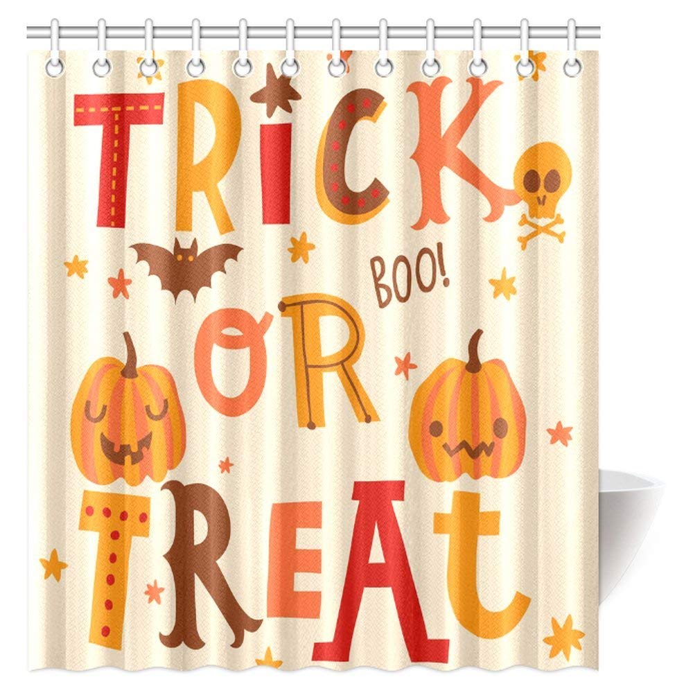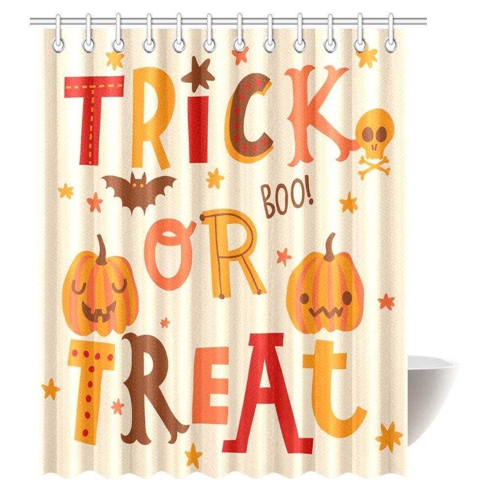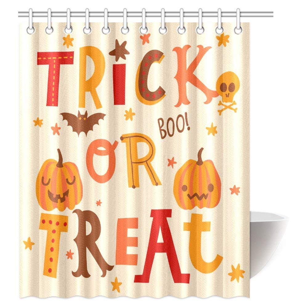 Halloween Decor Shower Curtain, Cute Trick or Treat in Cartoon Style Fabric Bathroom Shower Curtain Set with Hooks