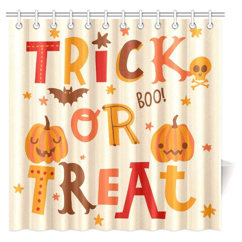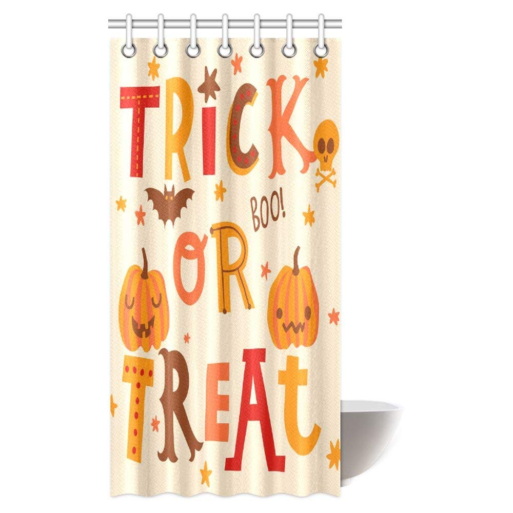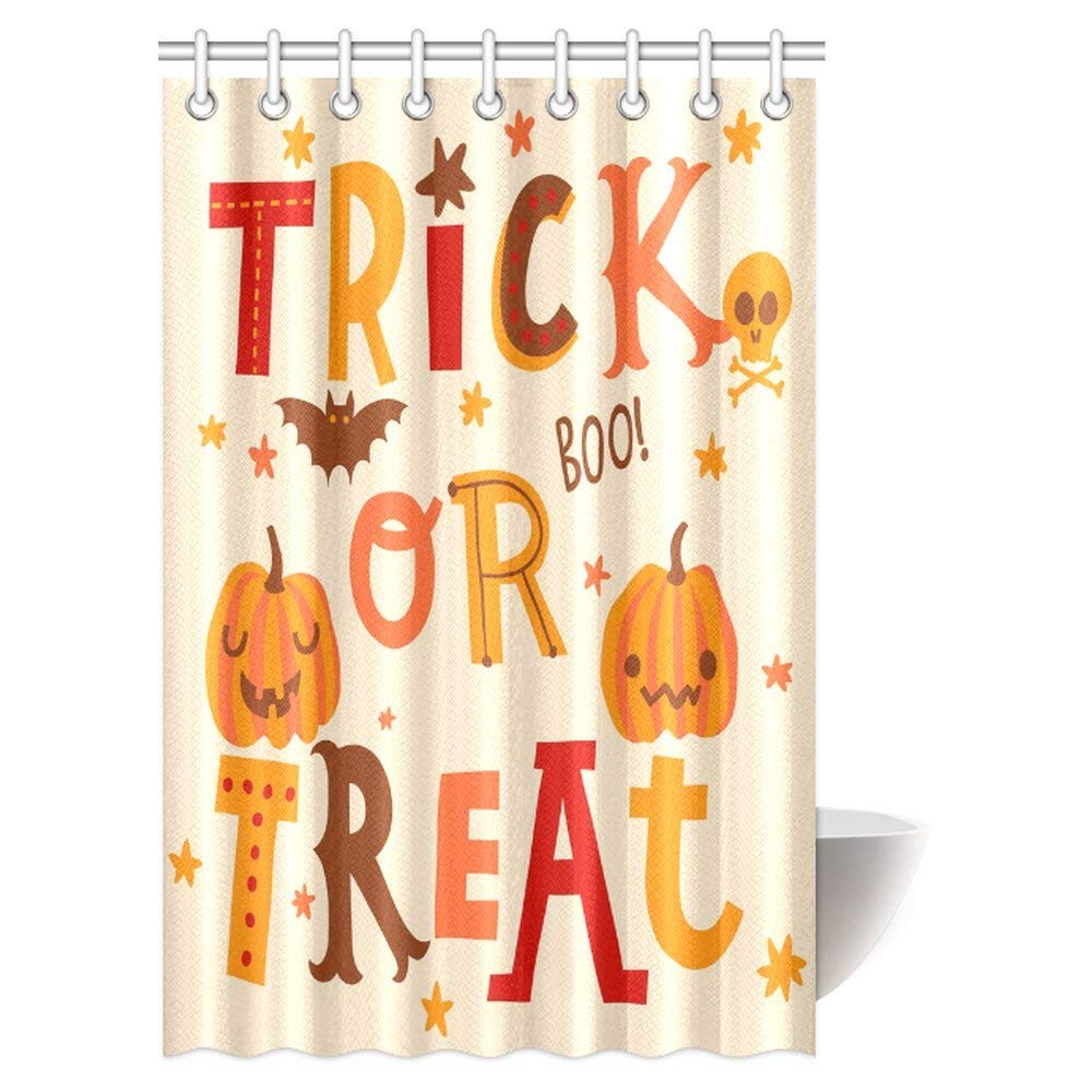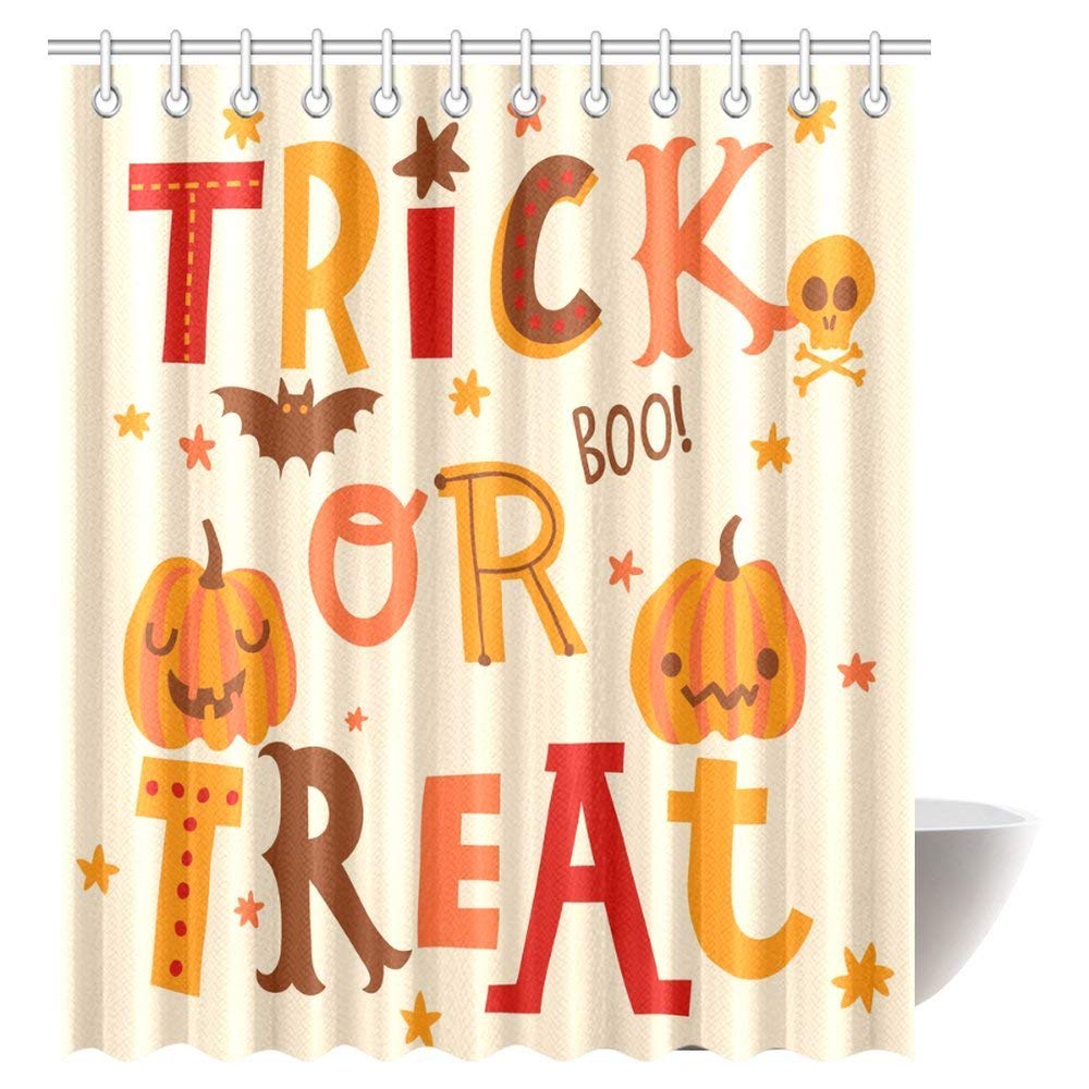 Halloween Decor Shower Curtain, Cute Trick or Treat in Cartoon Style Fabric Bathroom Shower Curtain Set with Hooks