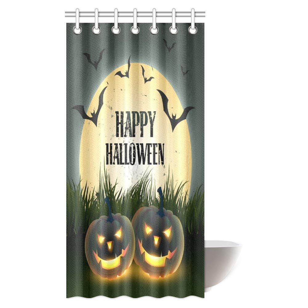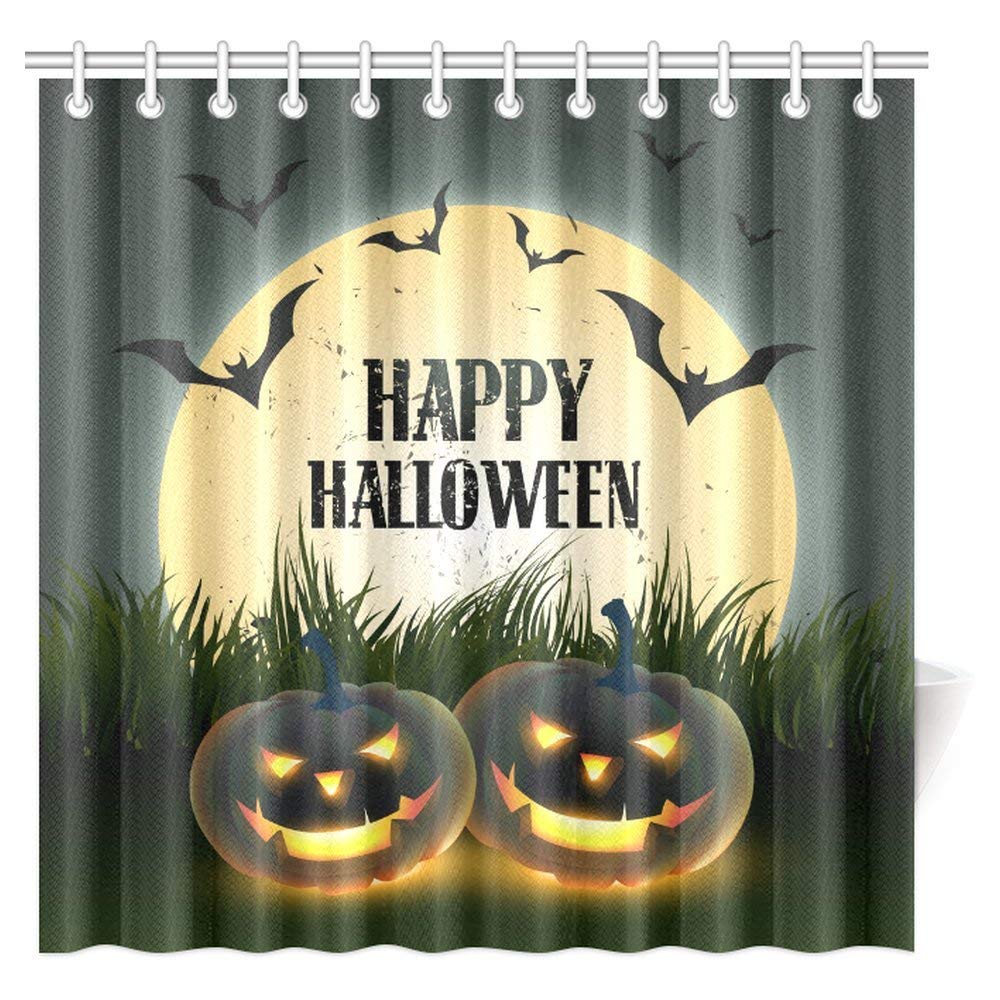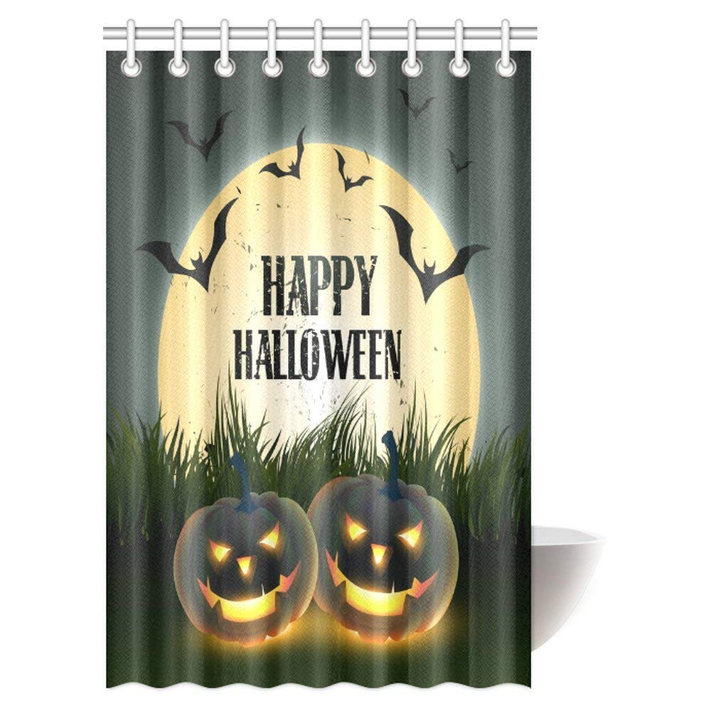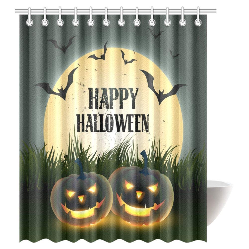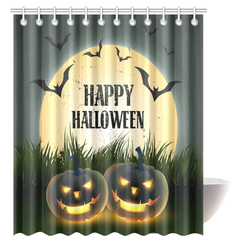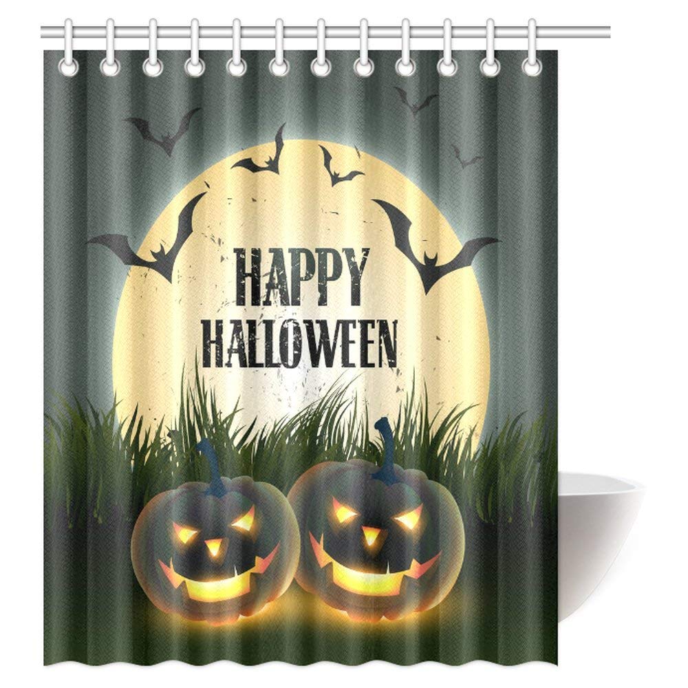 Halloween Shower Curtain, Halloween Themed Asymmetric Caste with Scary Bats and Ghosts Full Moon Bathroom Shower Curtain Set with Hooks