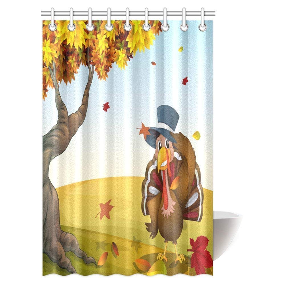 Happy Thanksgiving Shower Curtain, Turkey with Autumn Tree Scenery Fabric Shower Curtain