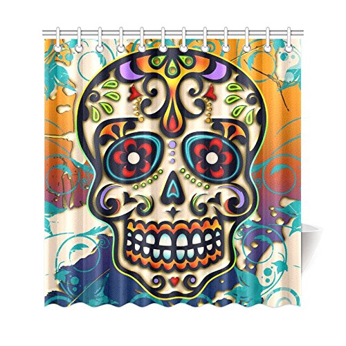 Mexico Dia De Los Muertos Sugar Skull Day of Dead Polyester Fabric Shower Curtain