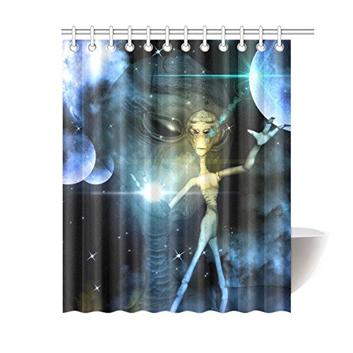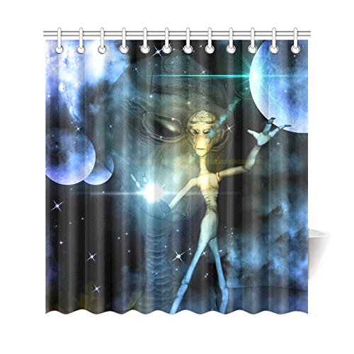 Modern Home Bath Decor, Alien in Universe Polyester Fabric Shower Curtain Bathroom Sets