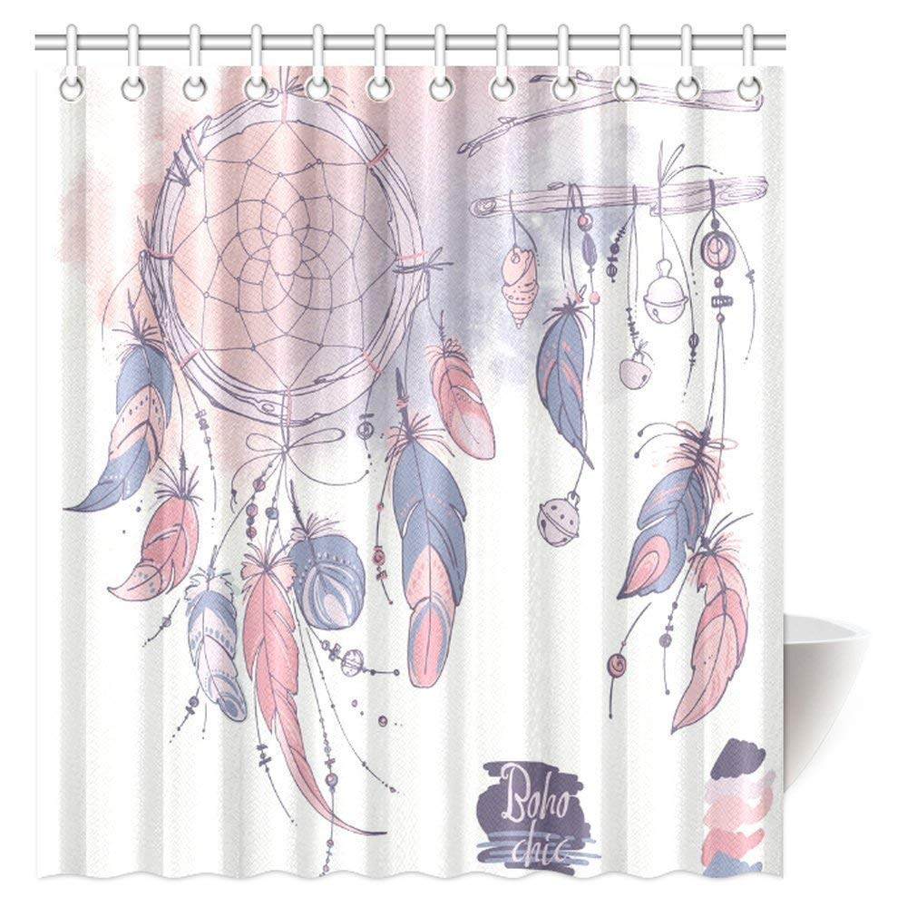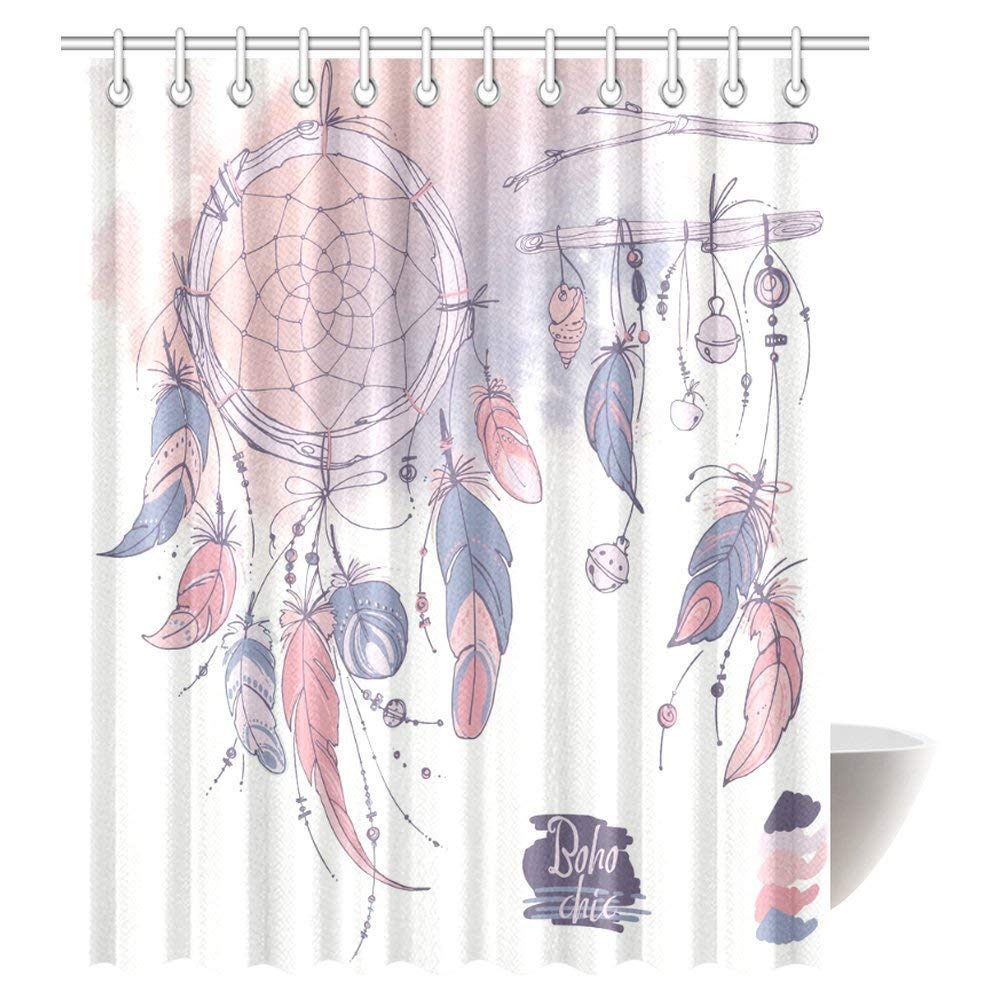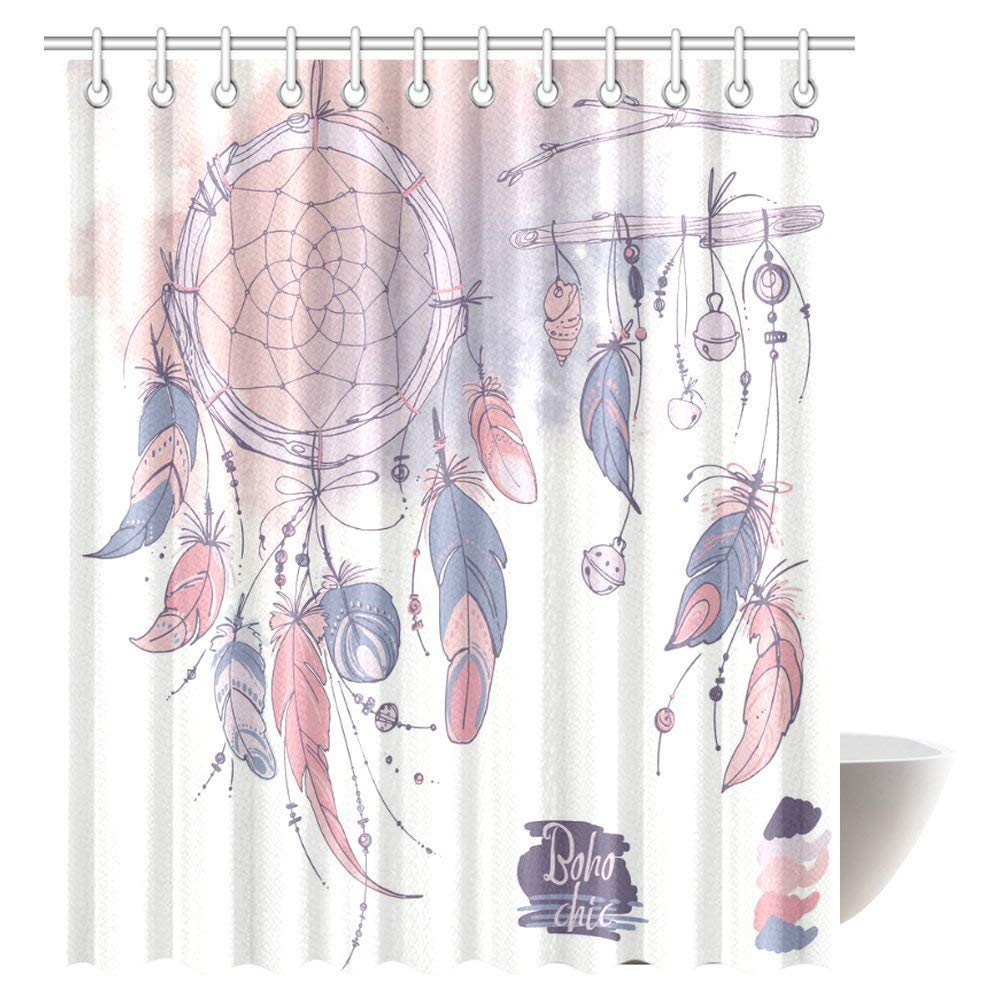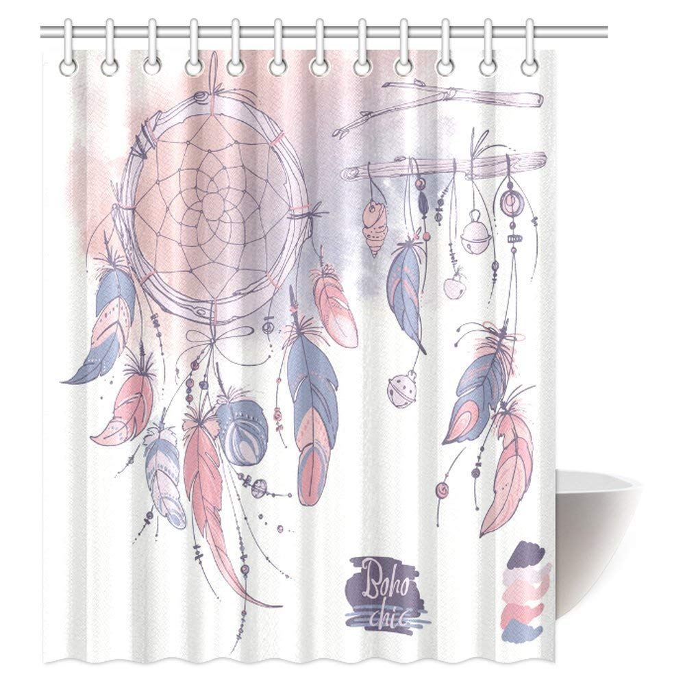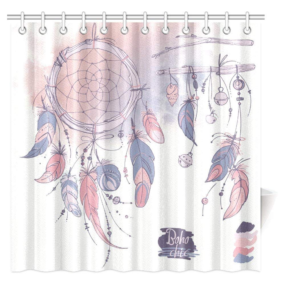 Native American Shower Curtain, Ethnic Dreamcatchers Native American Tribal Elements in Mod Graphic Design Bathroom Decor Set with Hooks