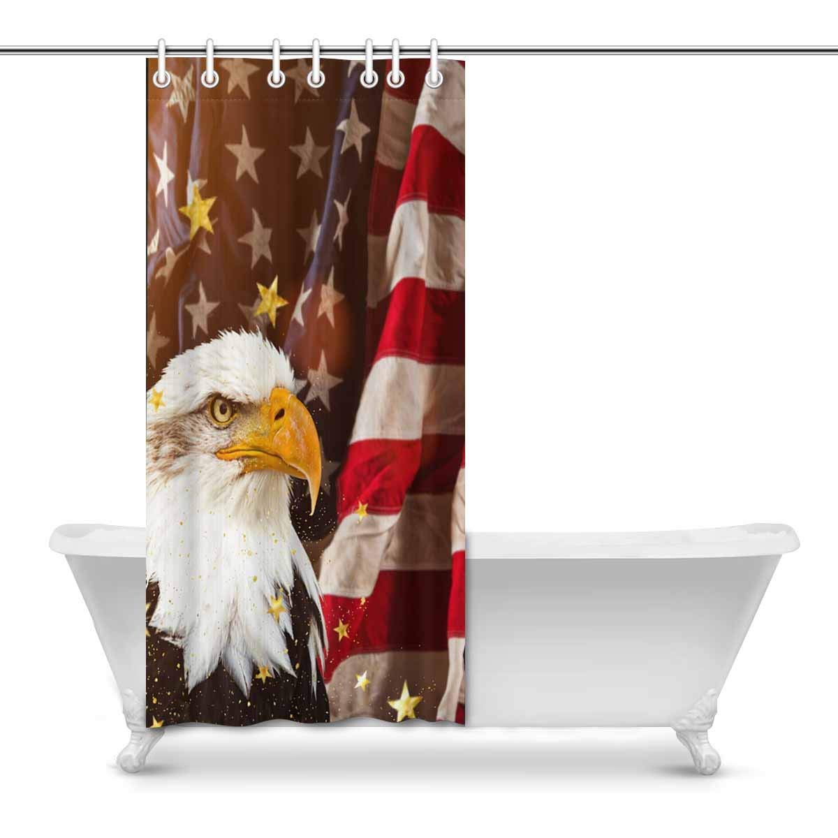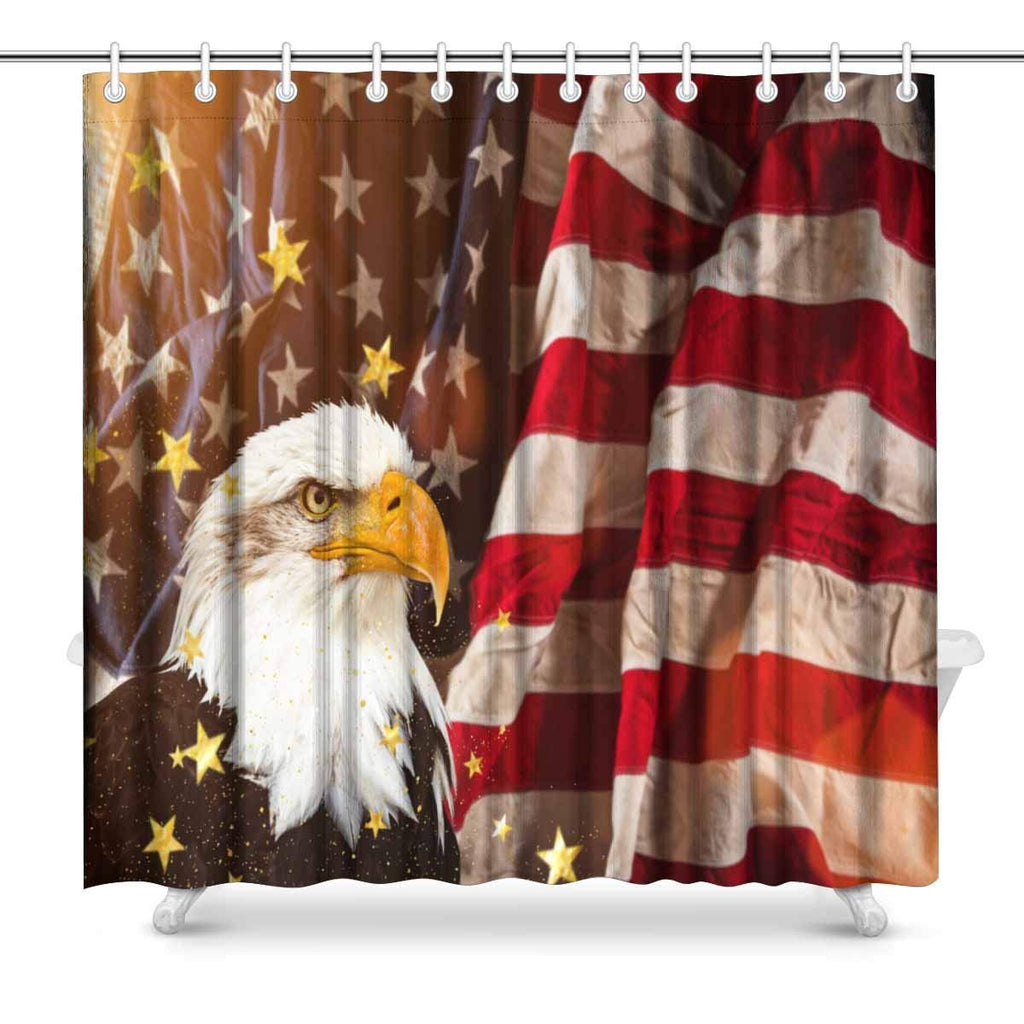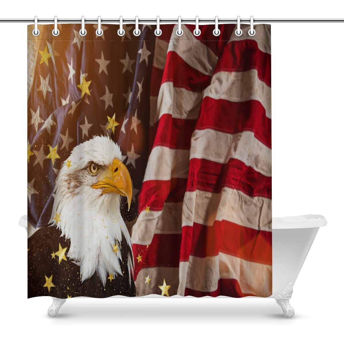 North American Bald Eagle with American Flag Fabric Bathroom Decor Shower Curtain Set with Hooks