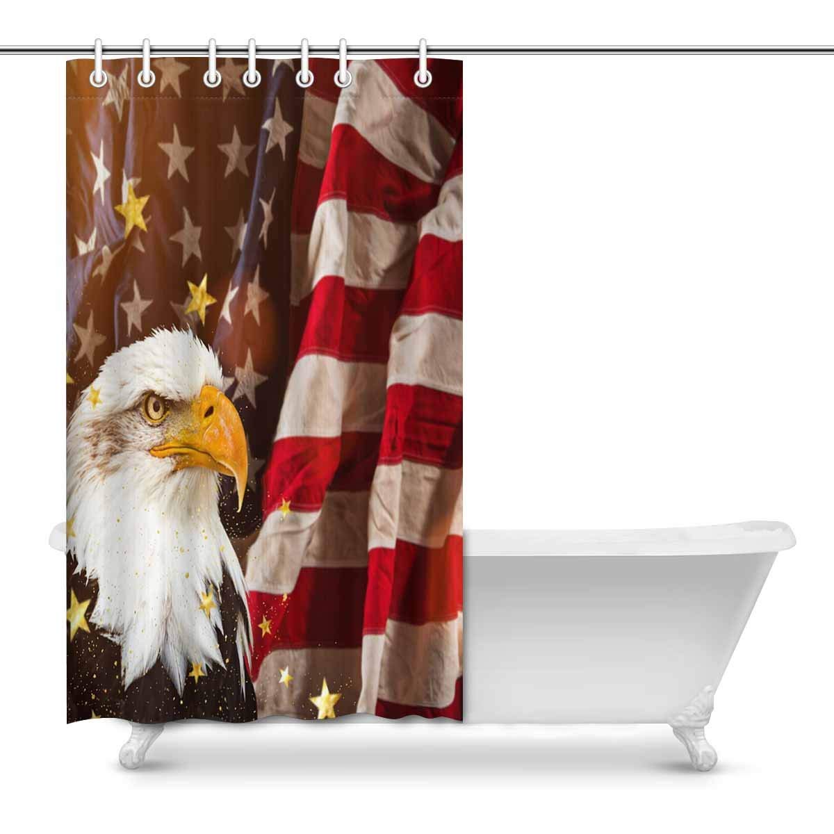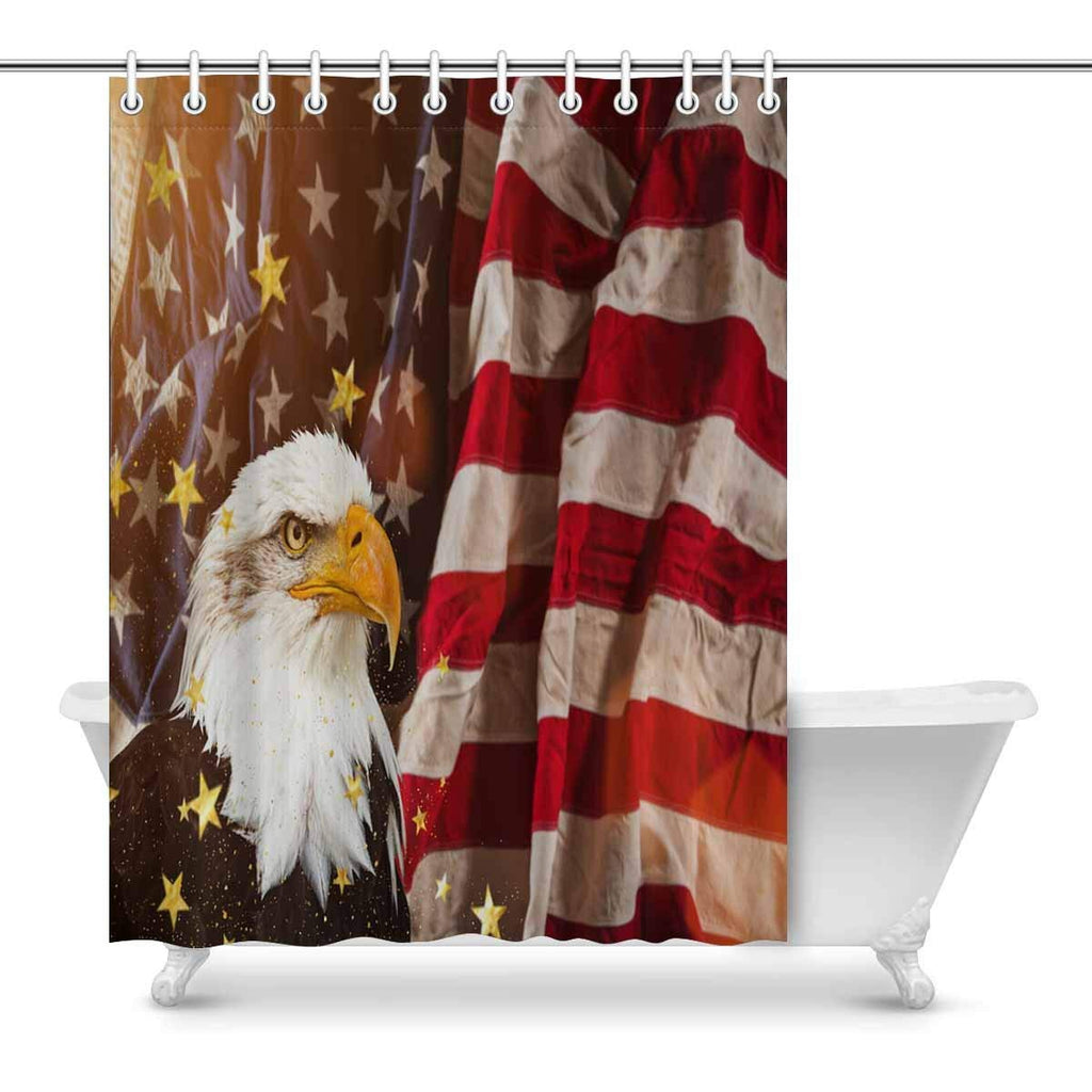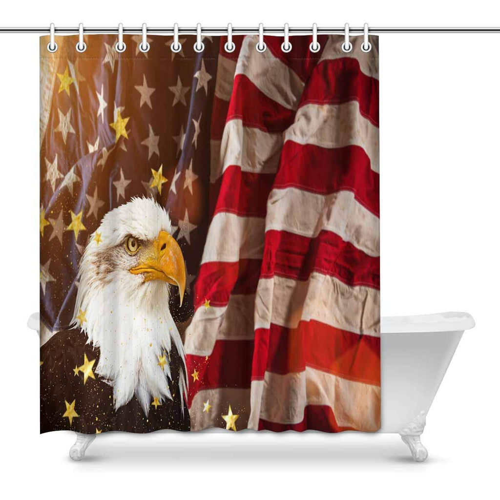 North American Bald Eagle with American Flag Fabric Bathroom Decor Shower Curtain Set with Hooks