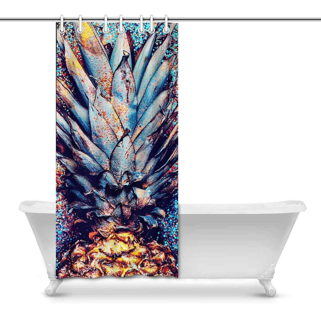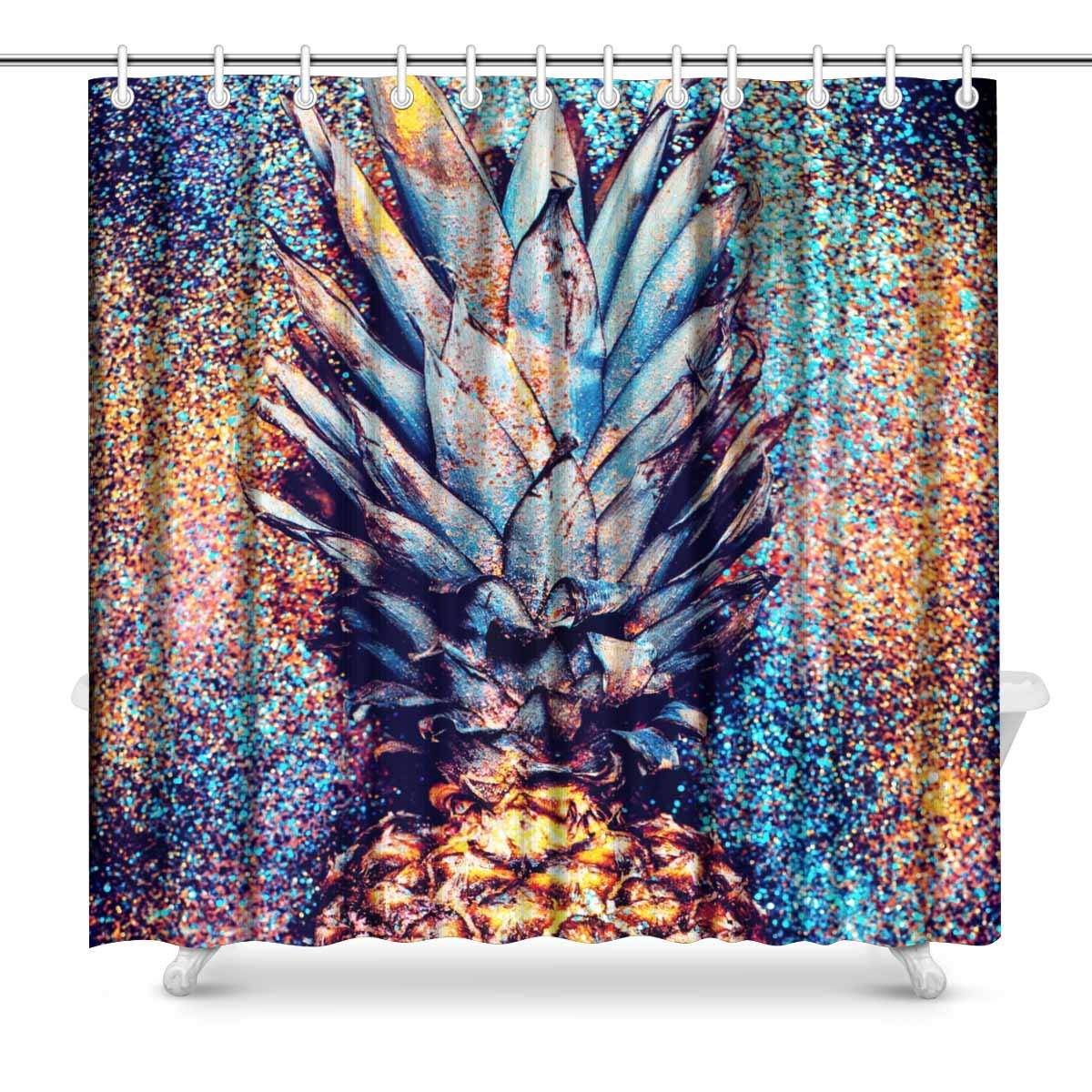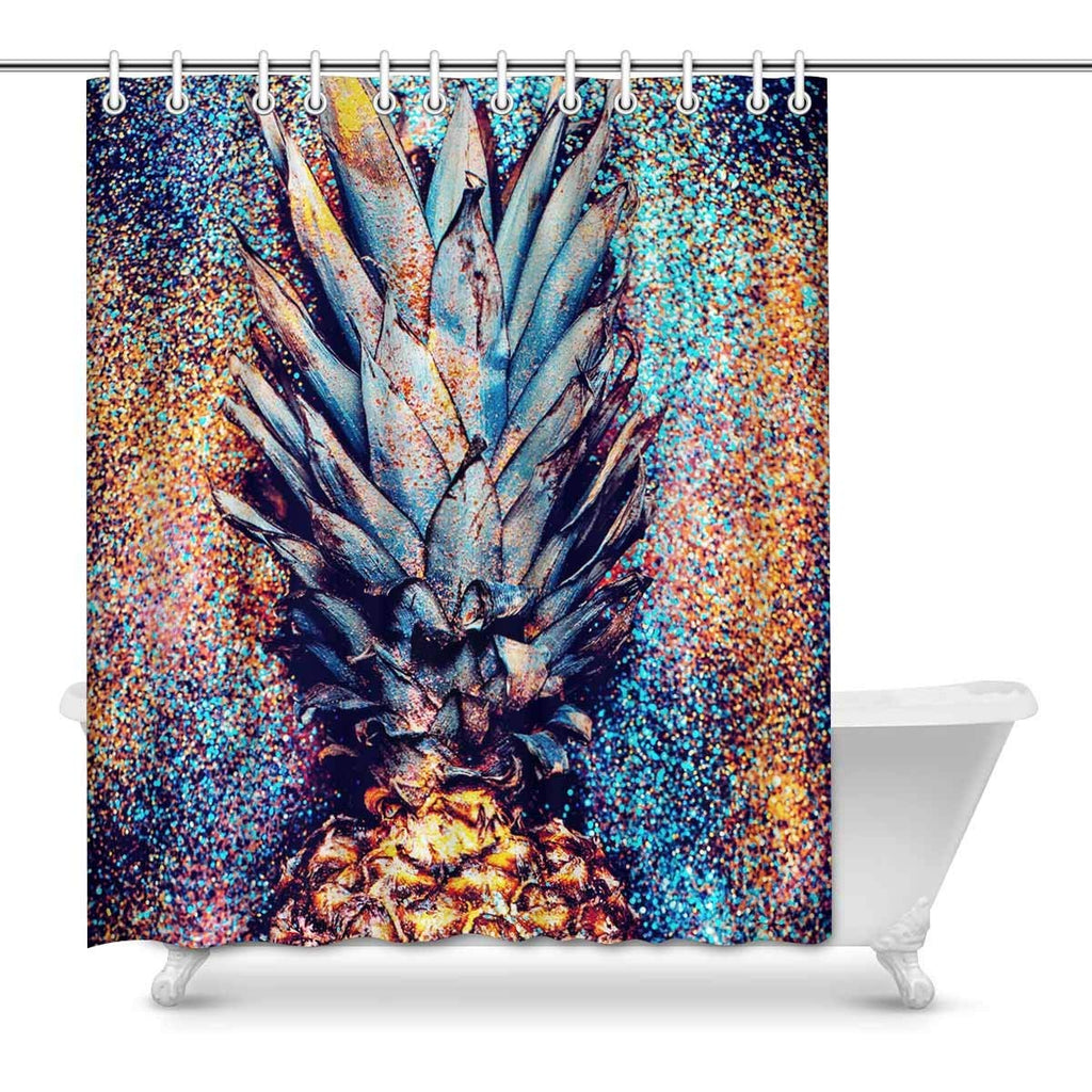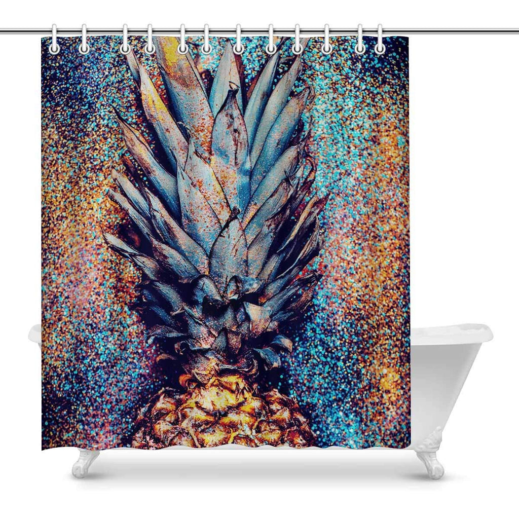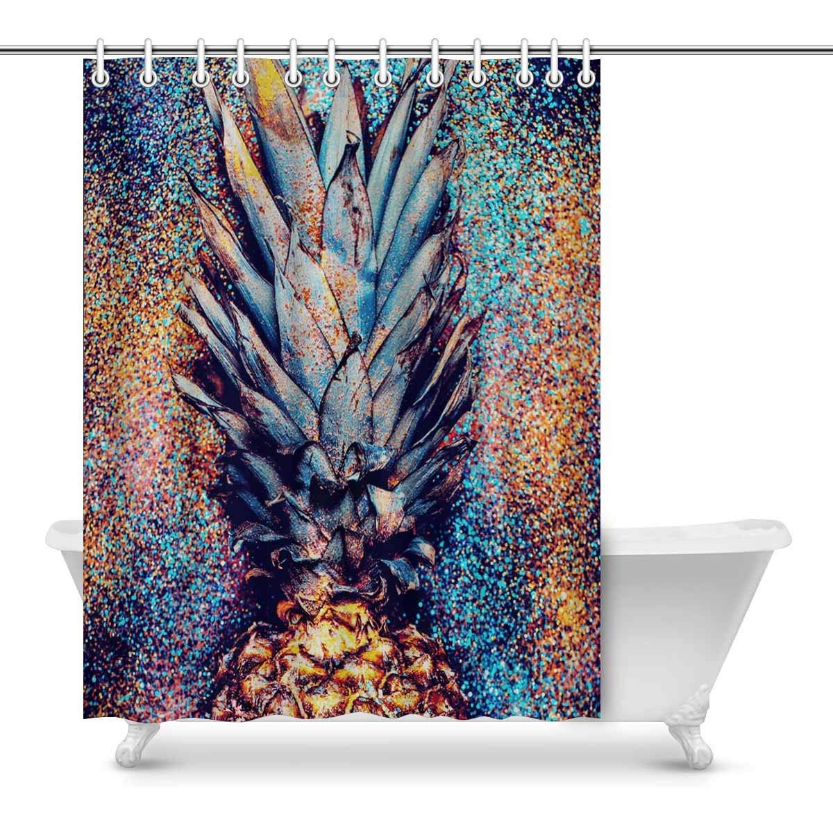 Pineapple Shine Style Fabric Bathroom Decor Shower Curtain Set with Hooks