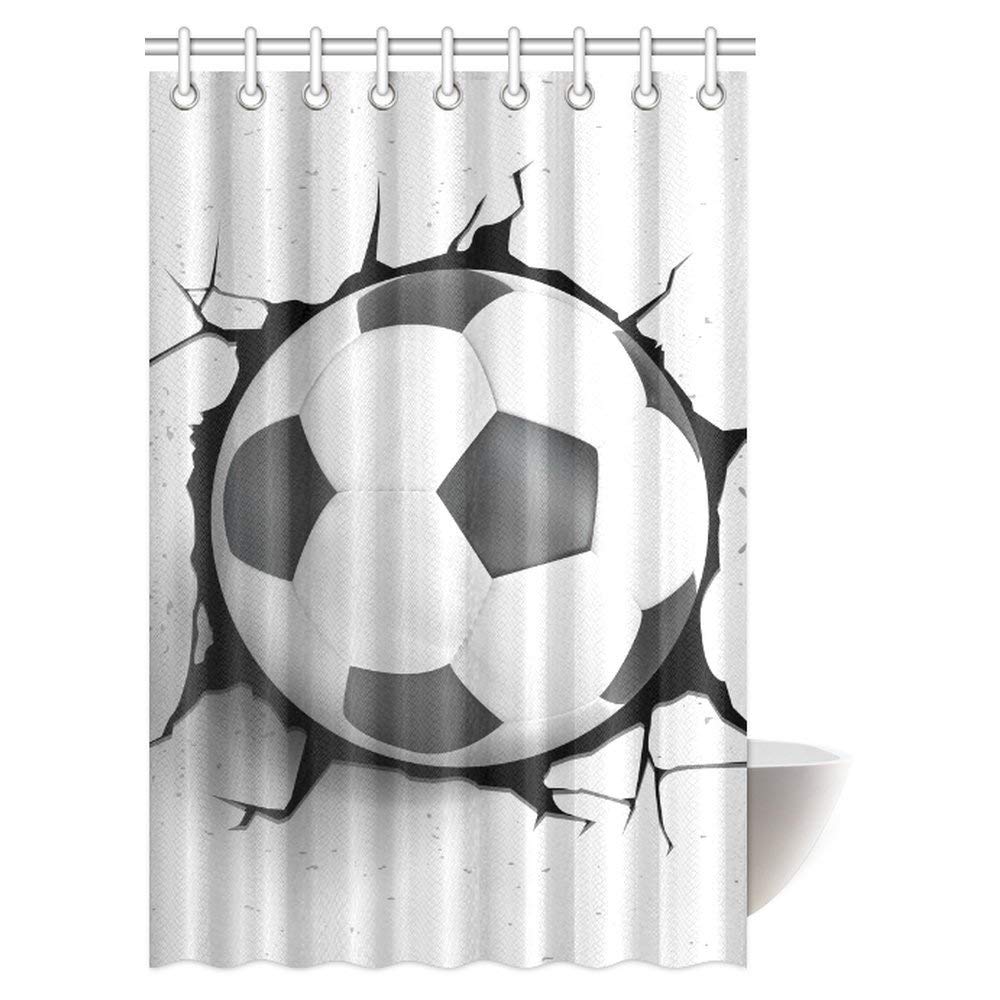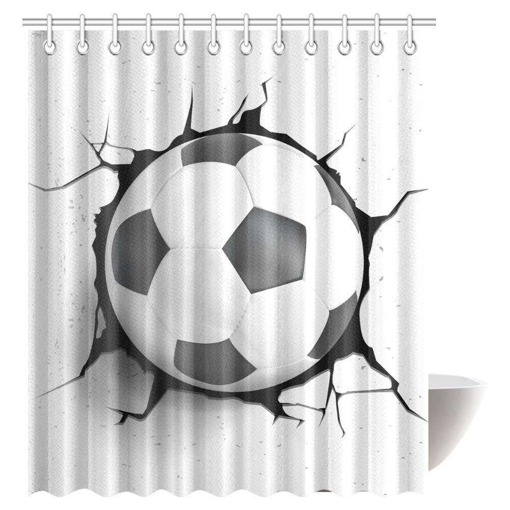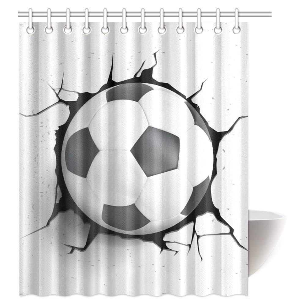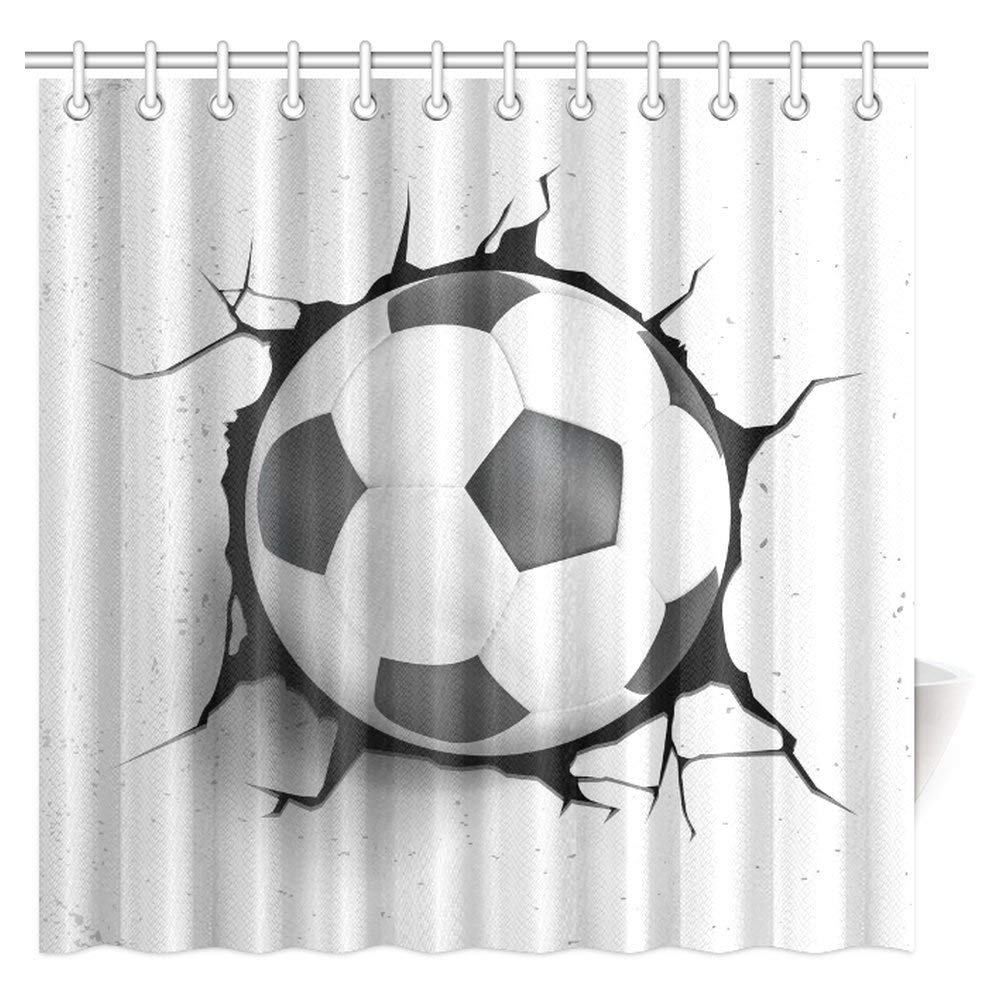 Sports Decor Shower Curtain, Football Soccer Ball Polyester Fabric Bathroom Shower Curtain