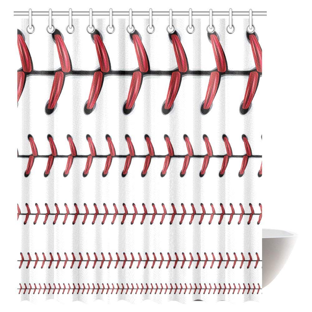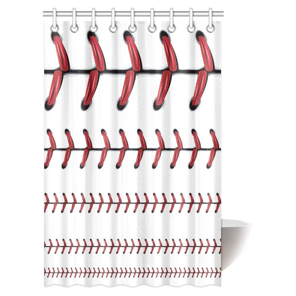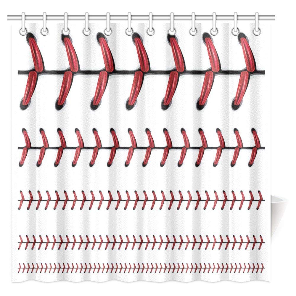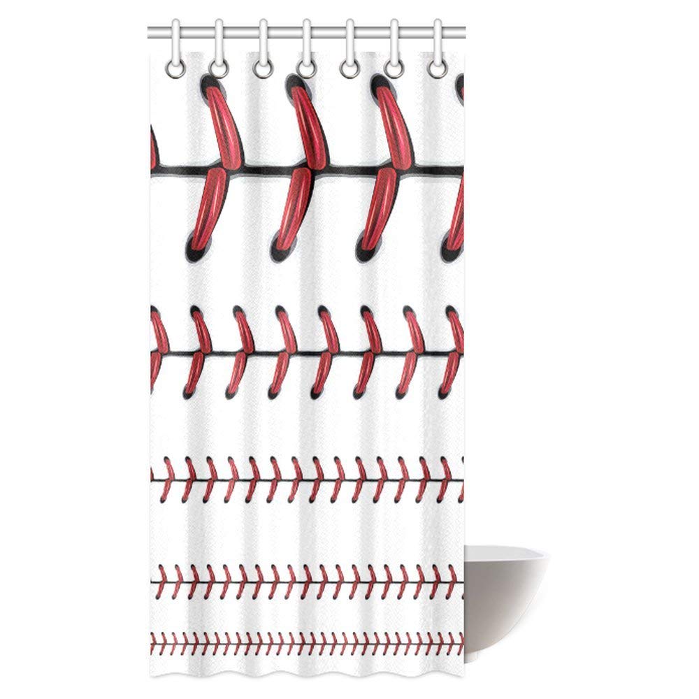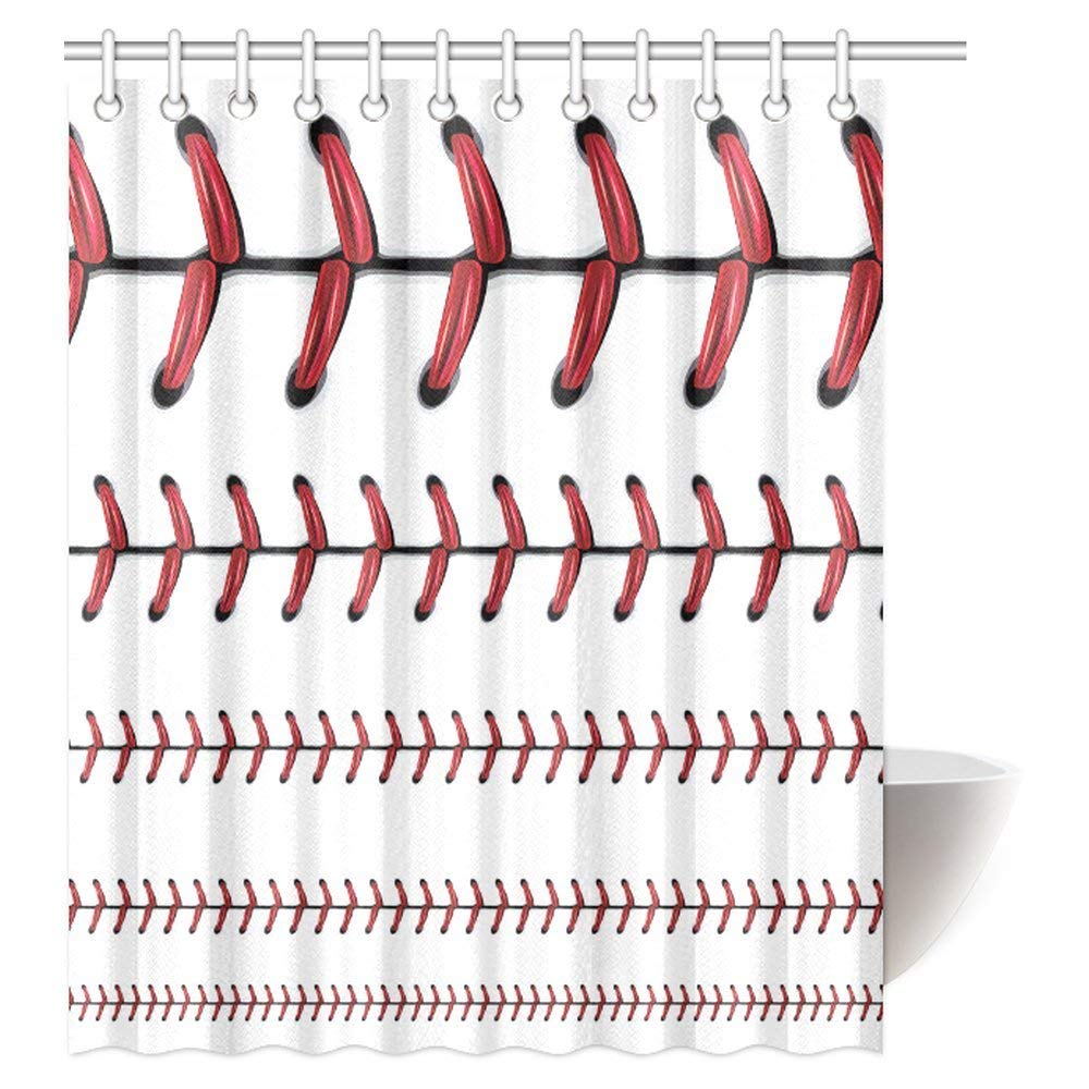 Sports Softball Decor Shower Curtain, Baseball Red Lace Over Polyester Fabric Bathroom Shower Curtain