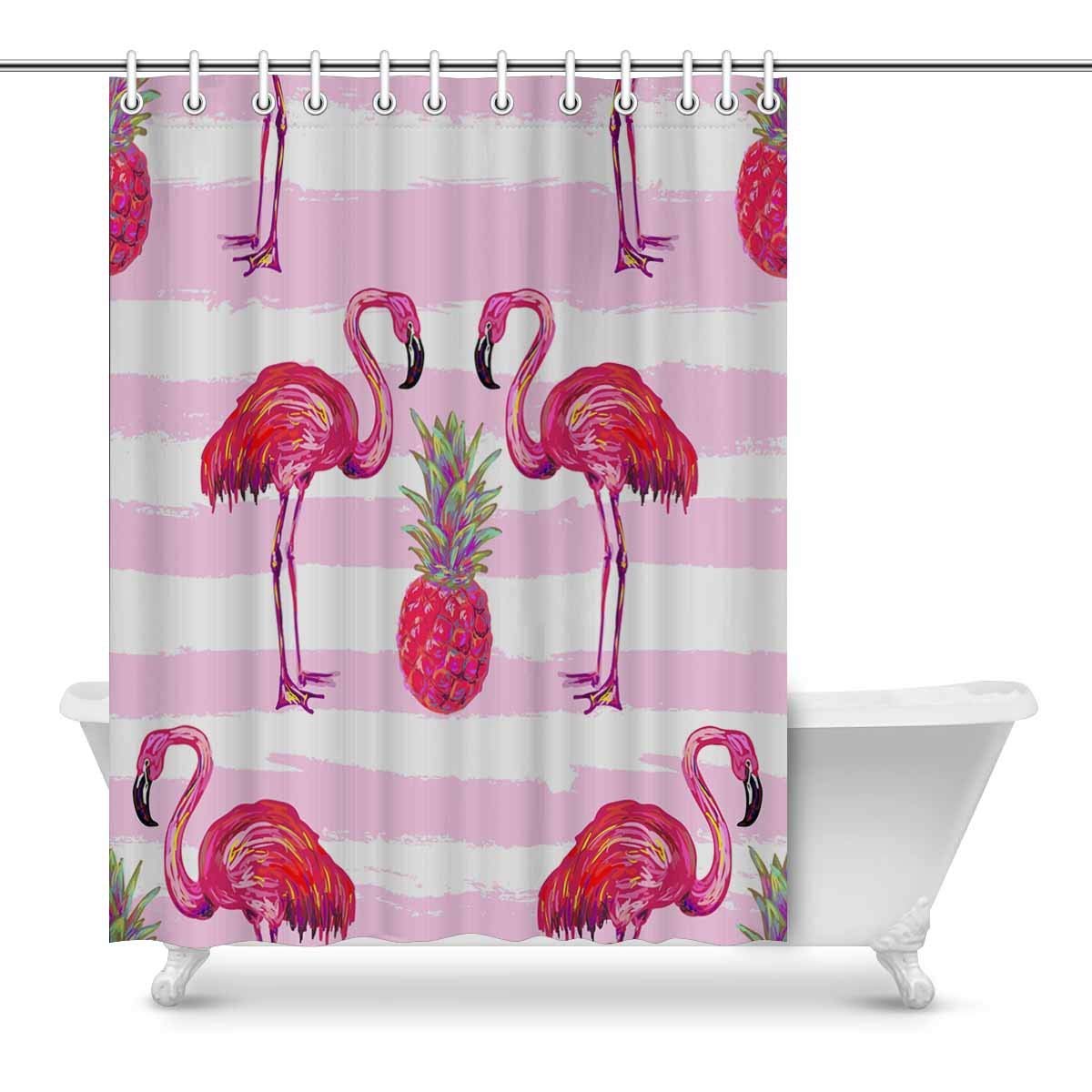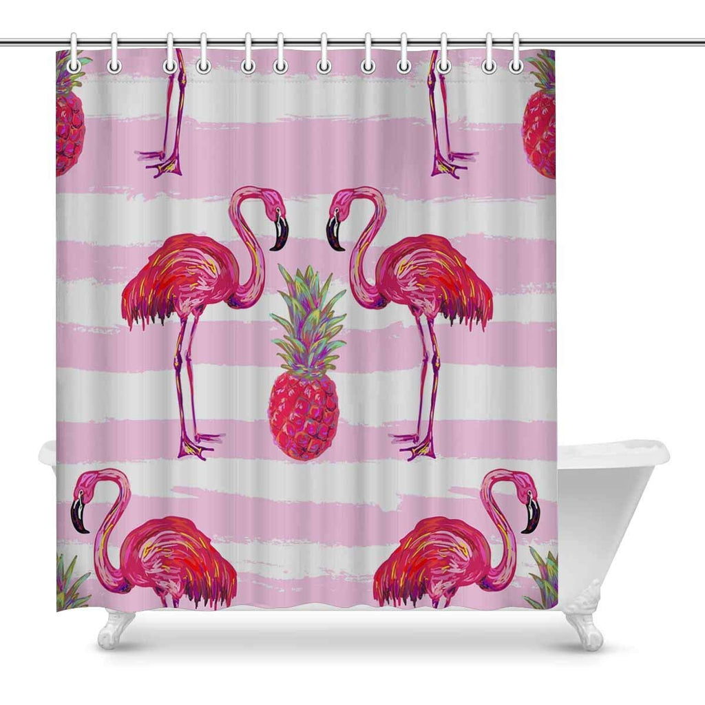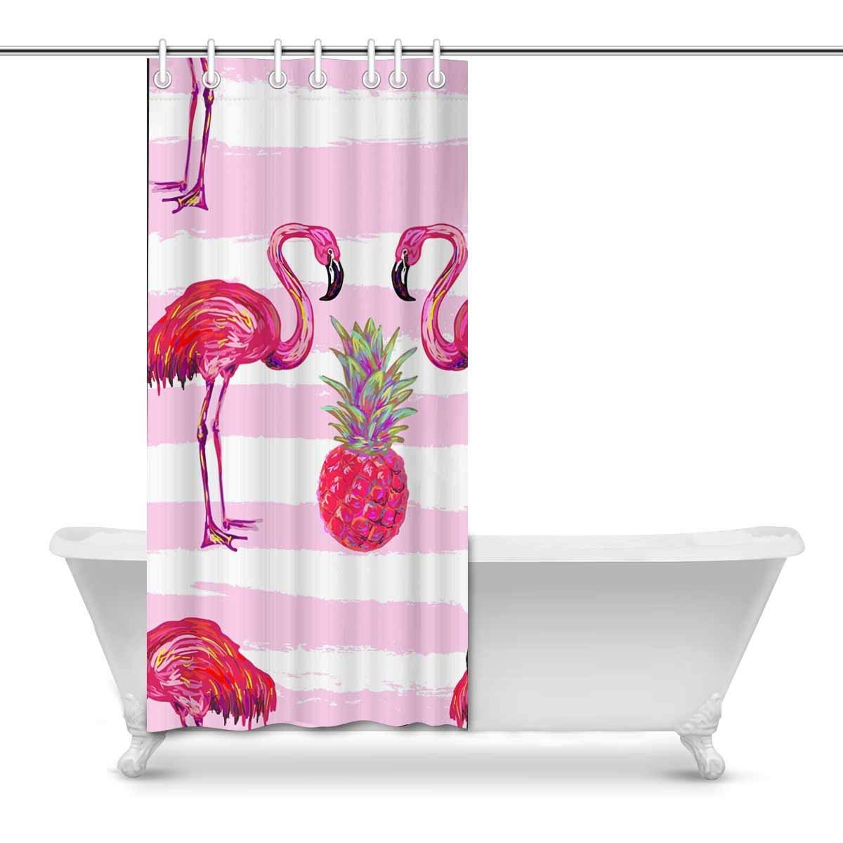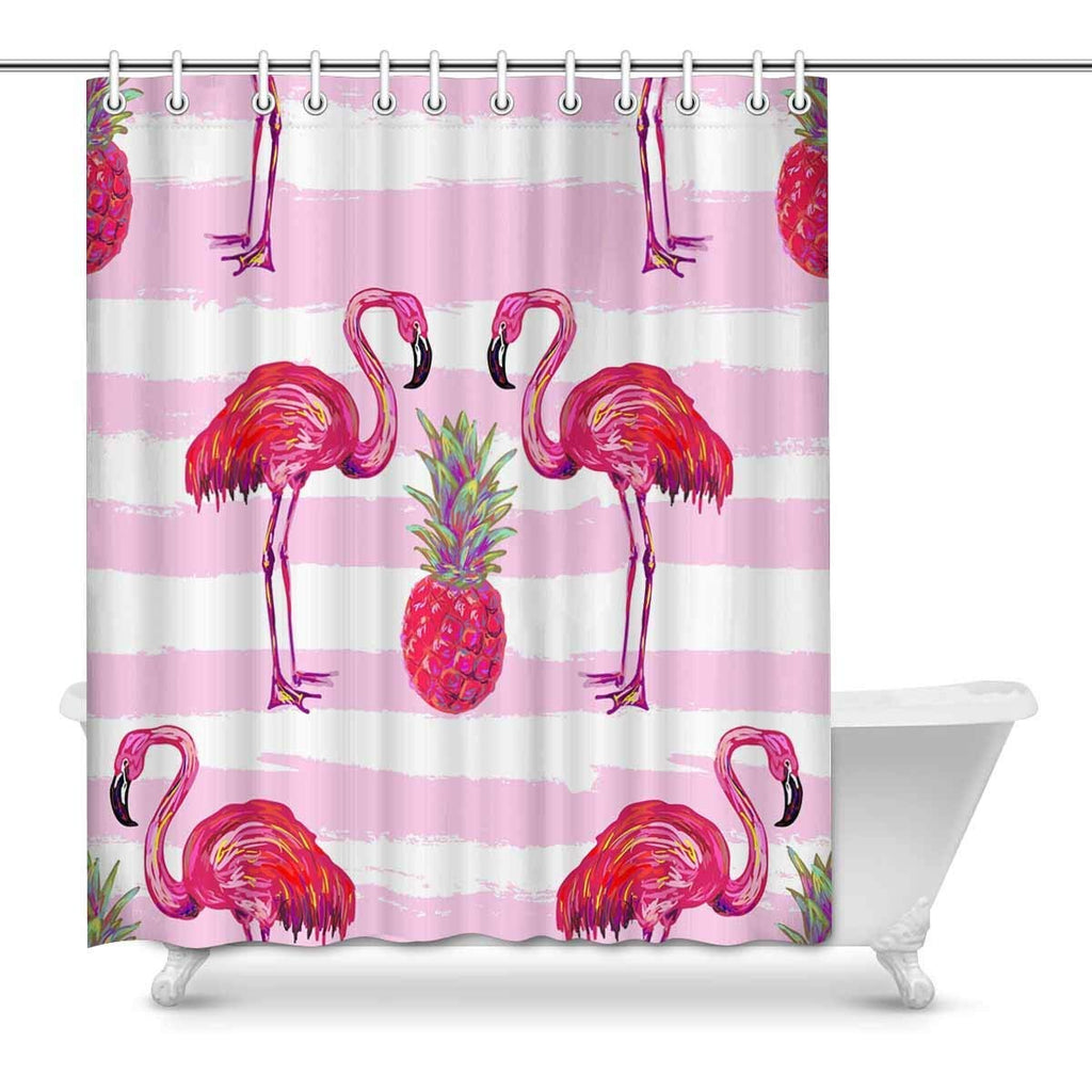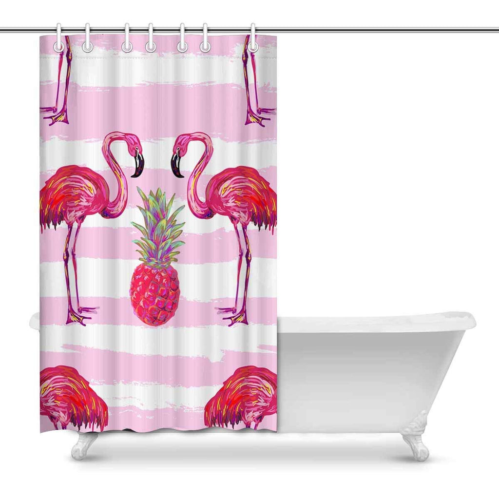 Summer Tropical Pattern with Flamingo and Pineapple Bathroom Shower Curtain Accessories