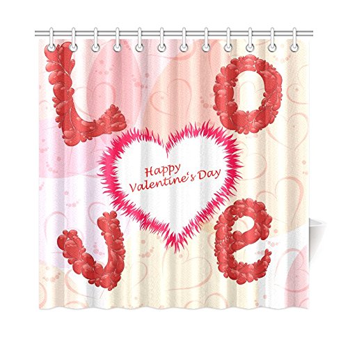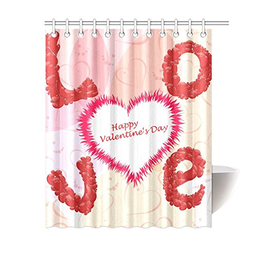 Valentine's Day Home Bath Decor, Love Heart Shape Polyester Fabric Shower Curtain Bathroom Sets