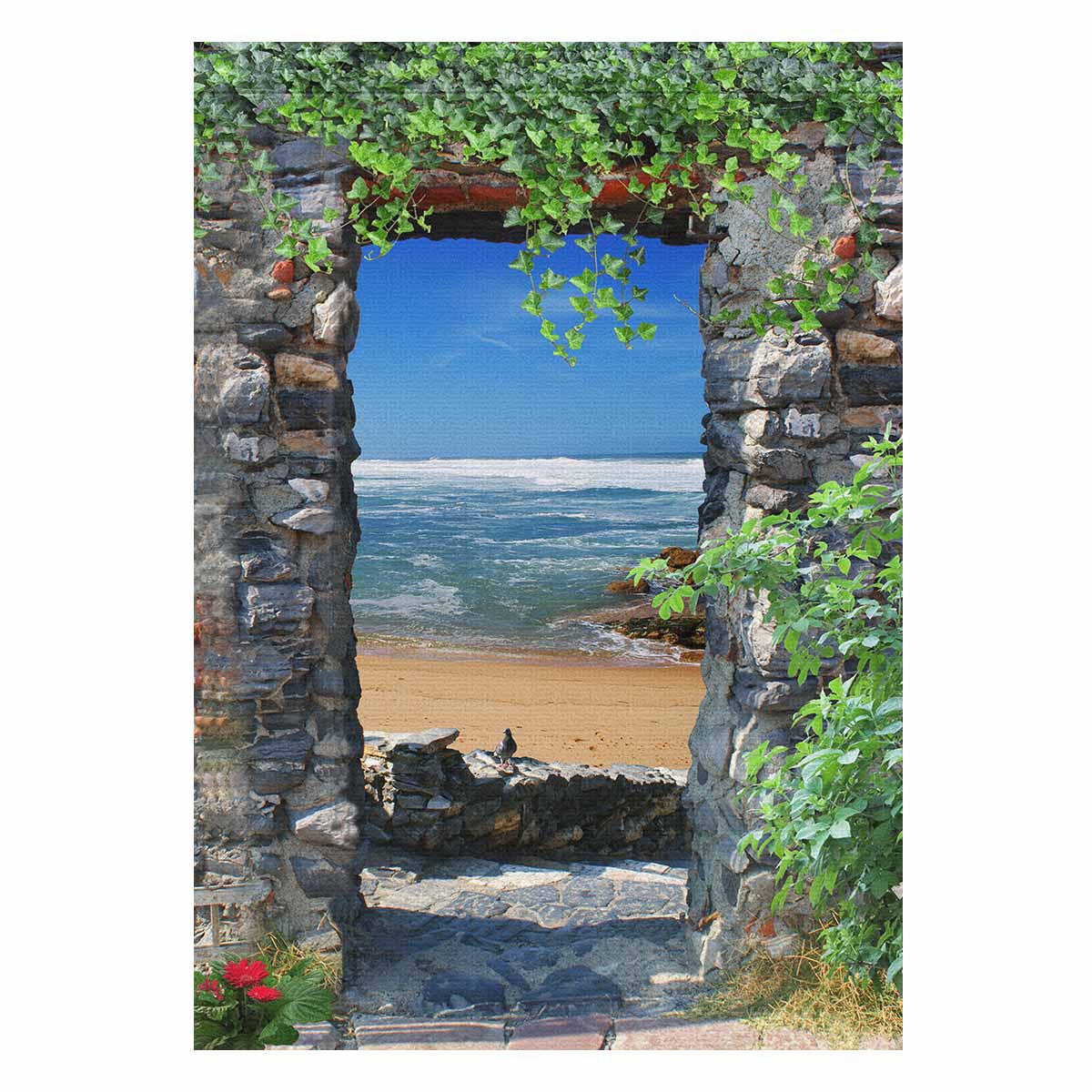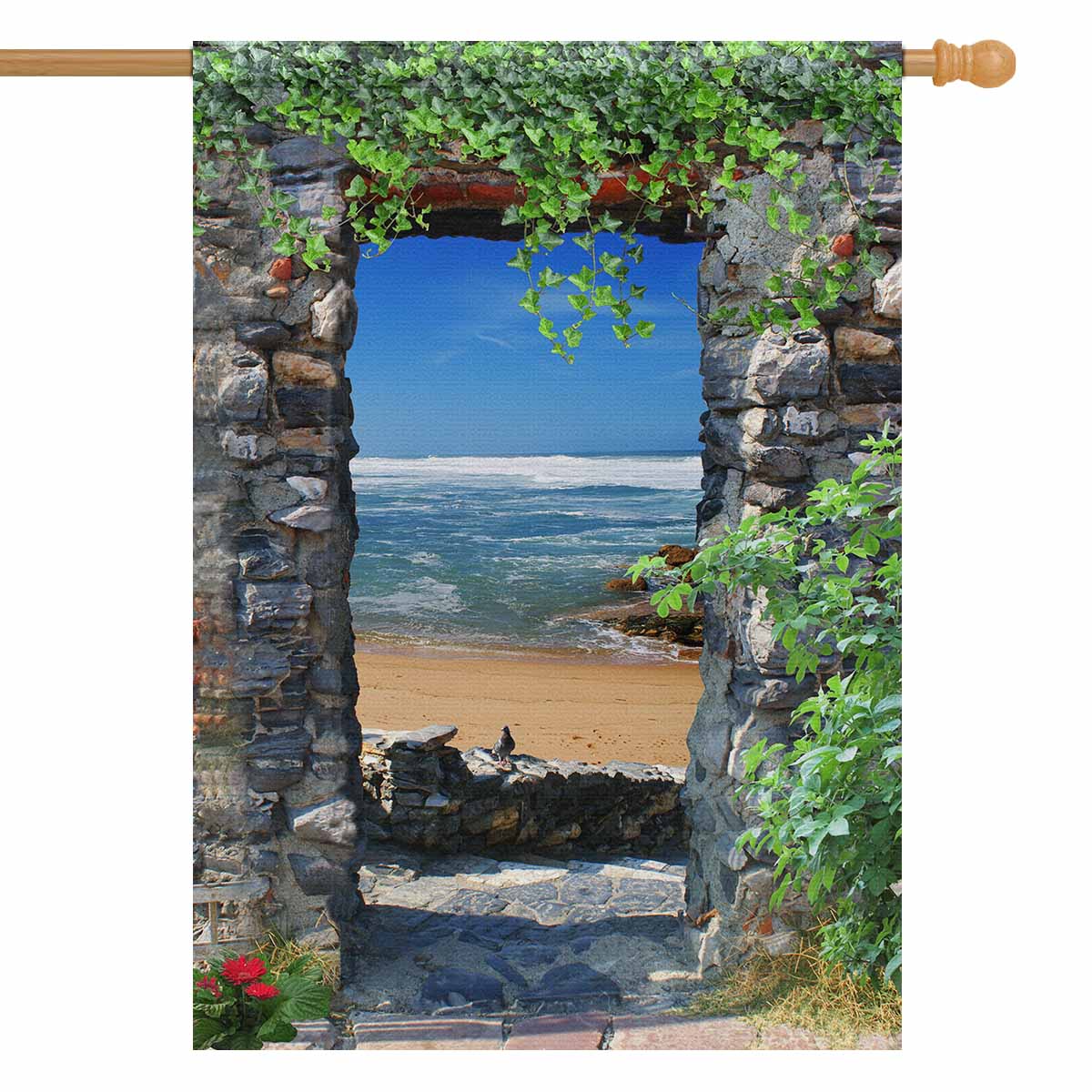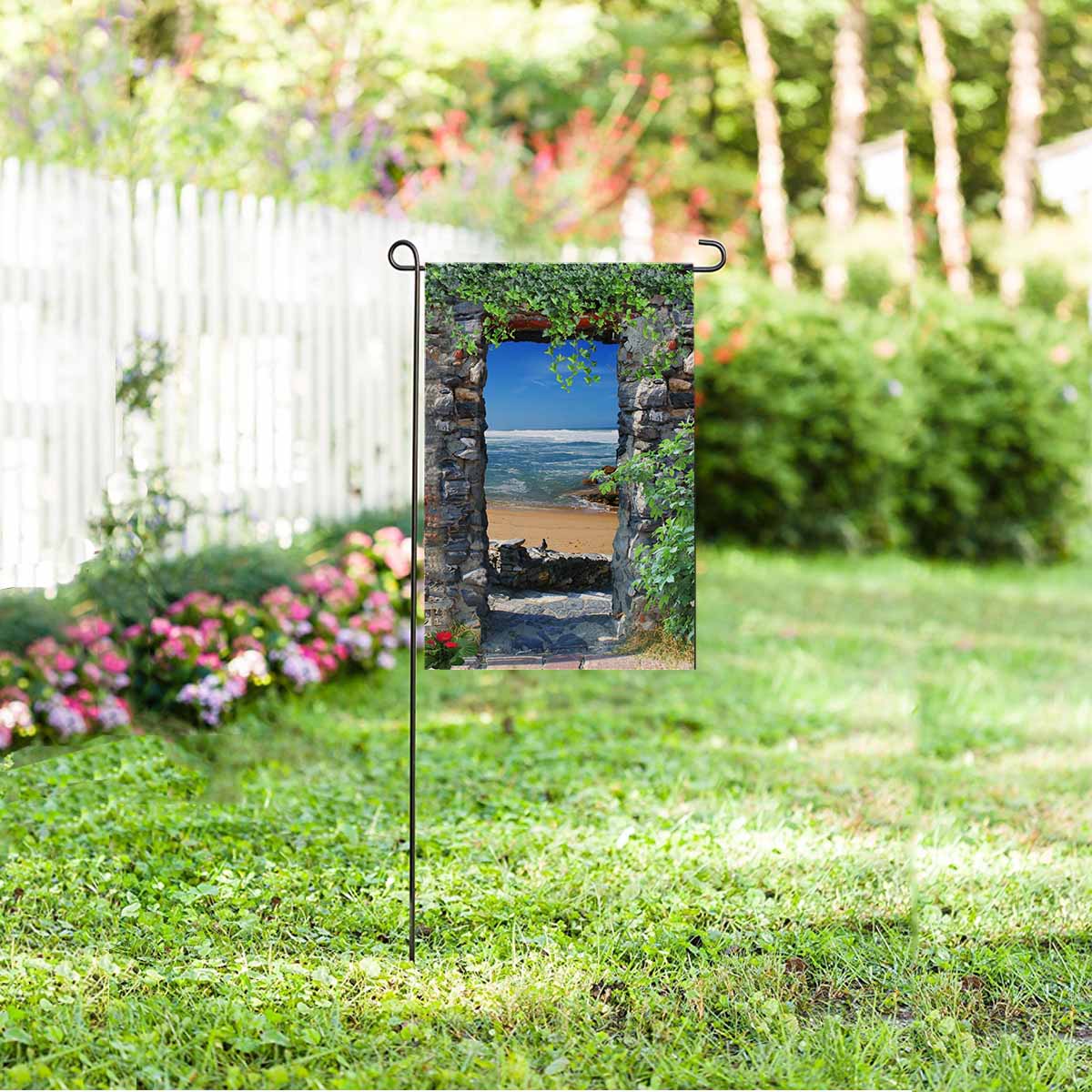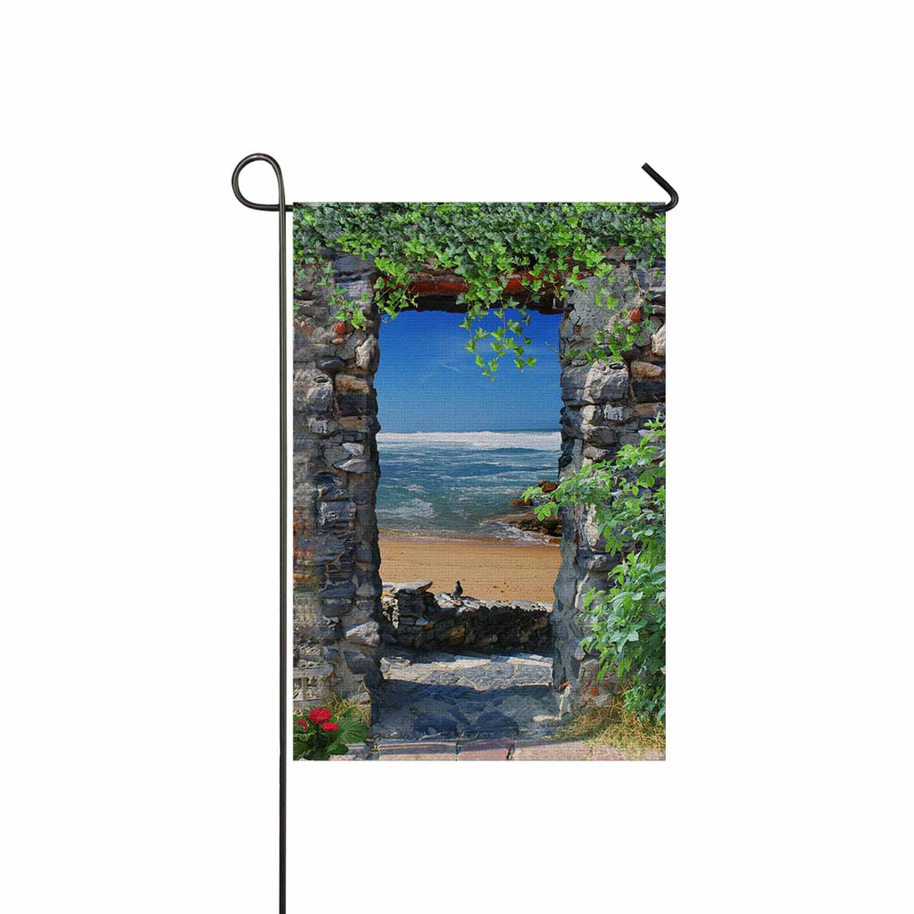 Garden Flags printed Nature Landscape themed with Arch overlooking the sea