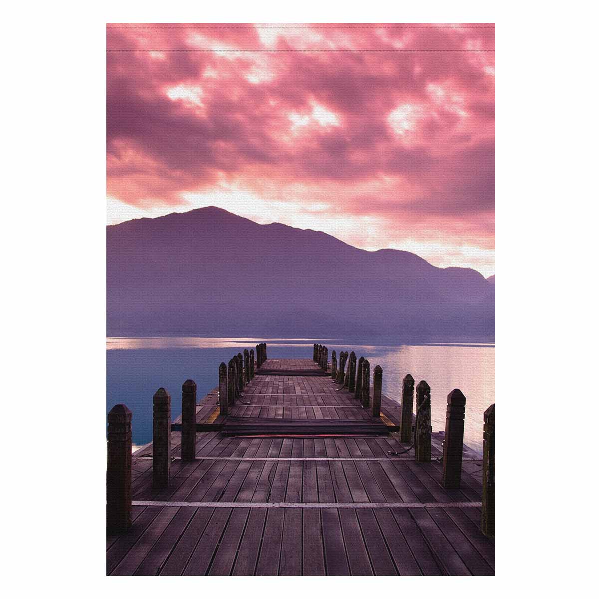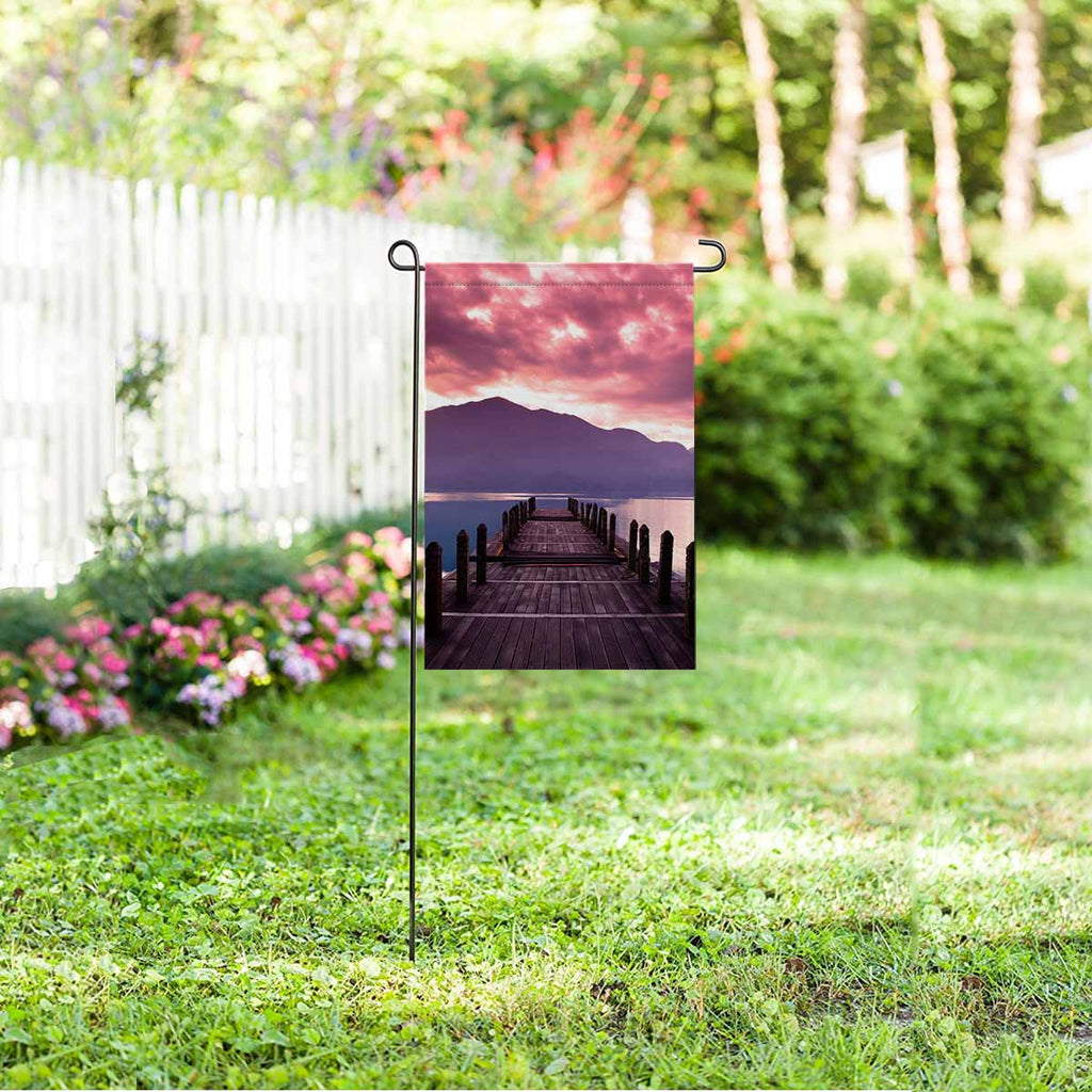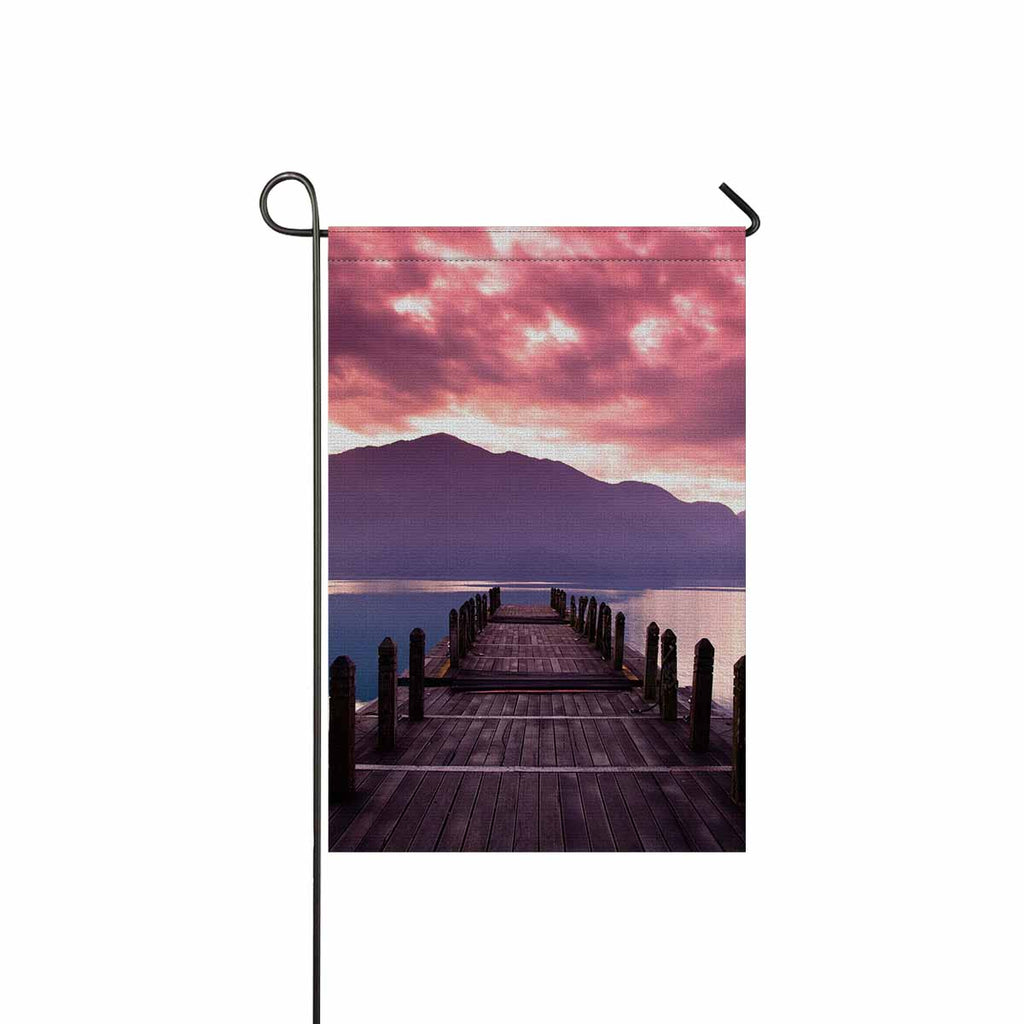 Garden Flags printed Nature Landscape themed with Beautiful morning at spring before sunrise and pier view