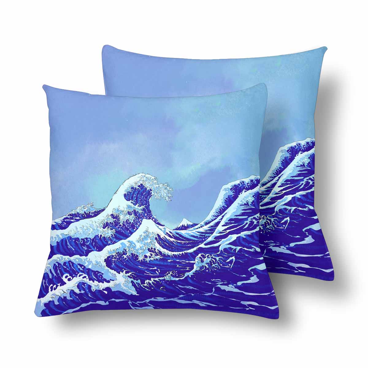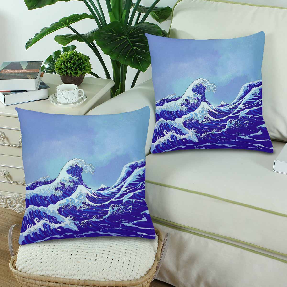 Nature Landscape themed Pillow Cases printed with Japanese sea waves with blue sky