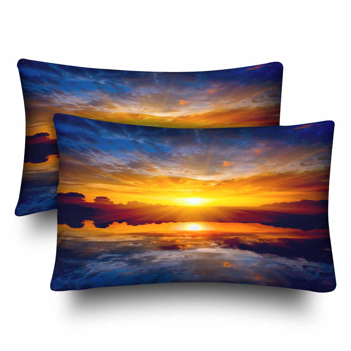 Nature Landscape themed Rectangle Pillow Cases printed sunset over lake