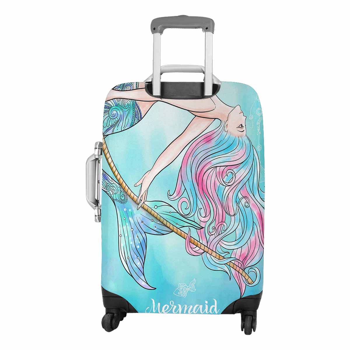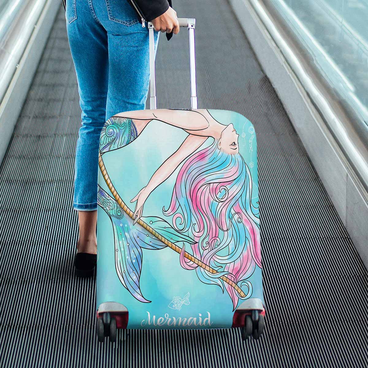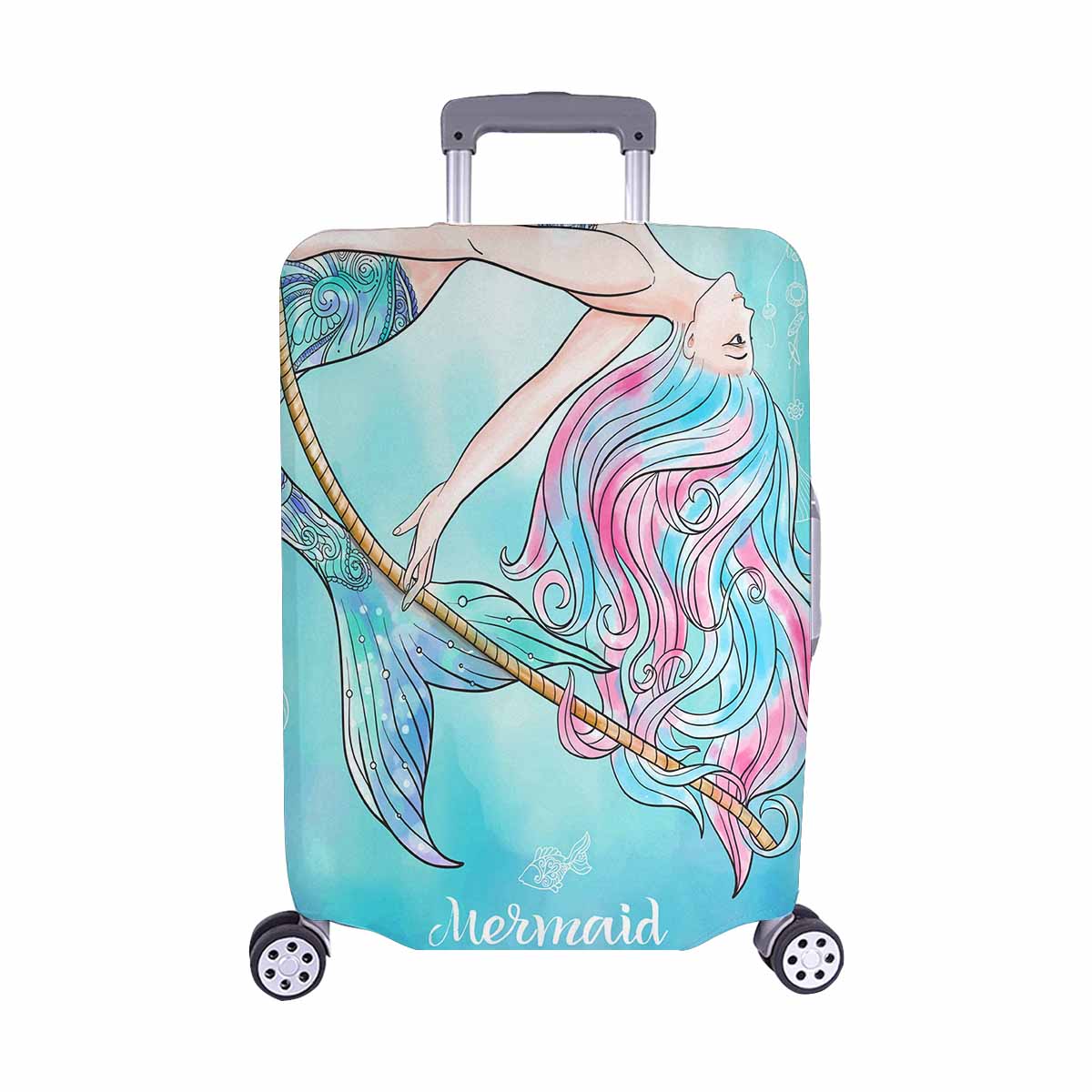 Nautical and Mermaid themed Cover for Luggage suitcase printed Hand drawn mermaid swinging on a rope, on watercolor background
