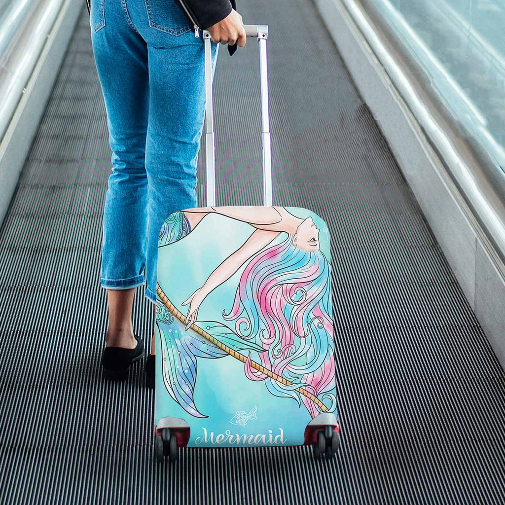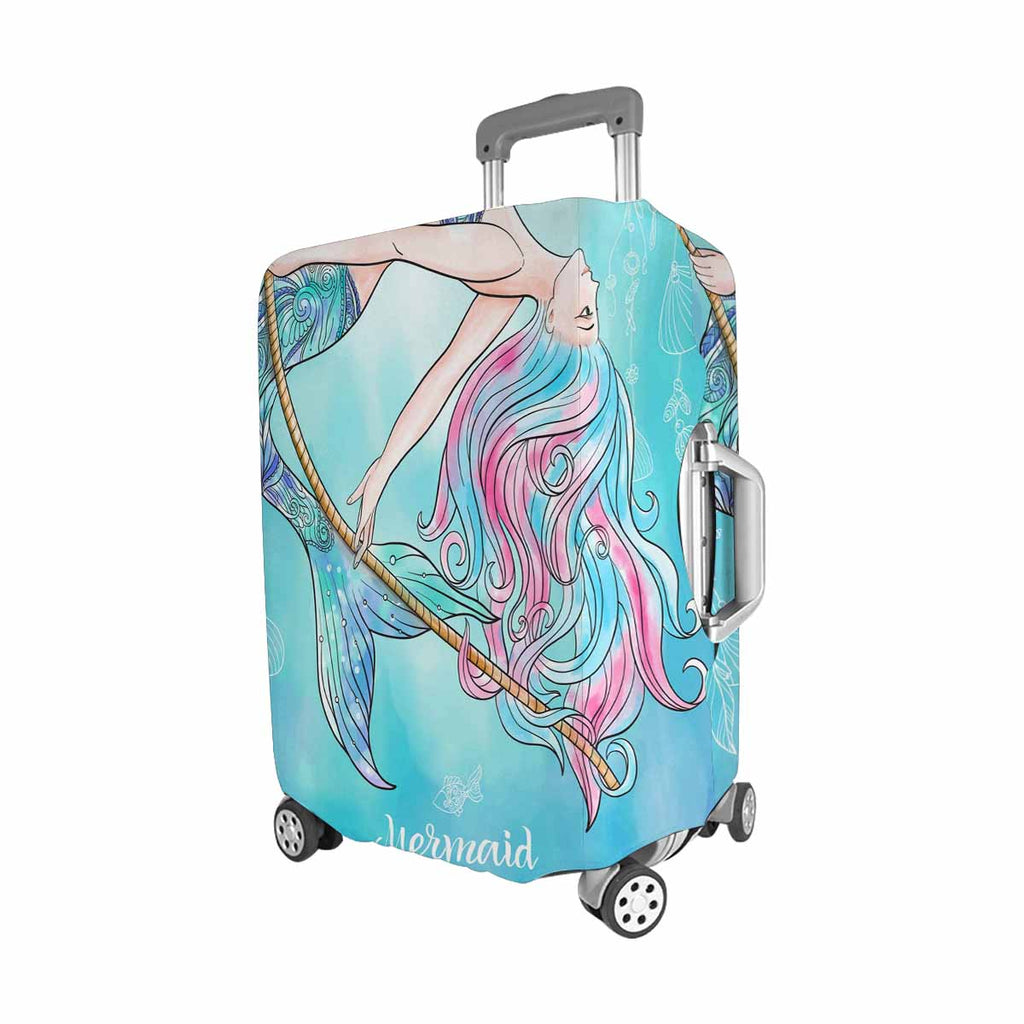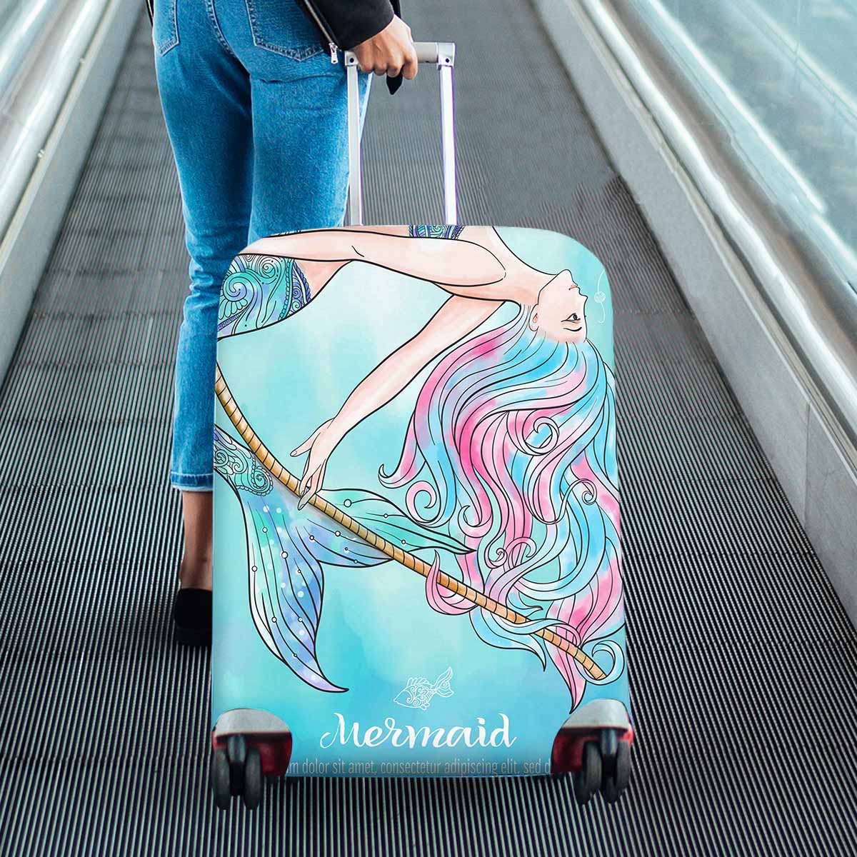 Nautical and Mermaid themed Cover for Luggage suitcase printed Hand drawn mermaid swinging on a rope, on watercolor background