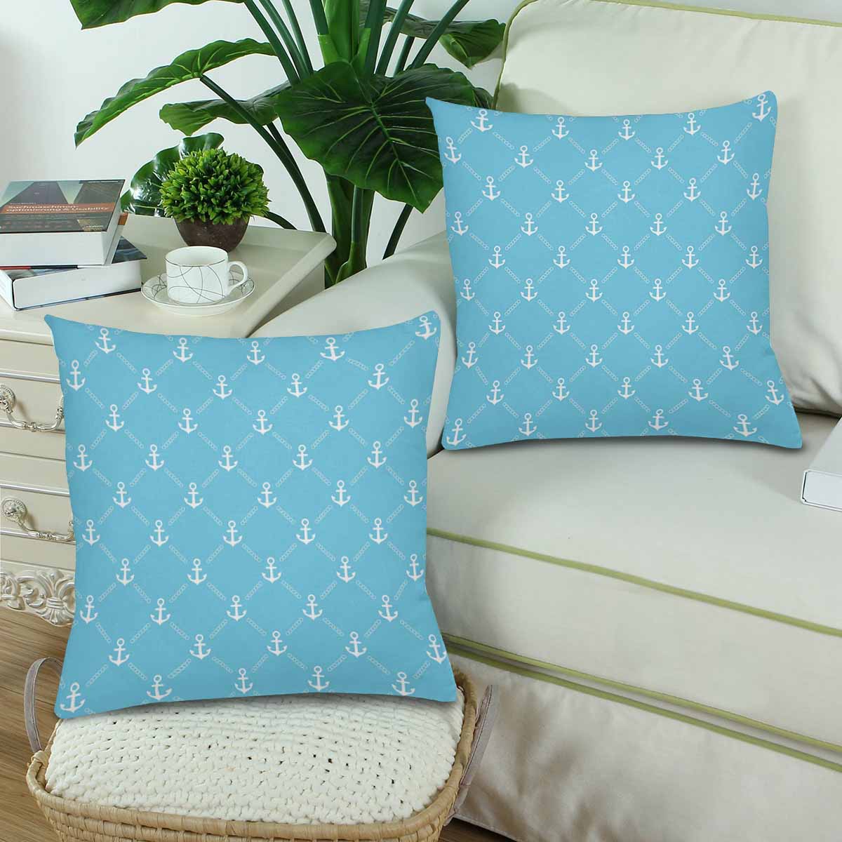 Nautical and Mermaid themed Pillow Cases printed with vector anchor light blue pattern