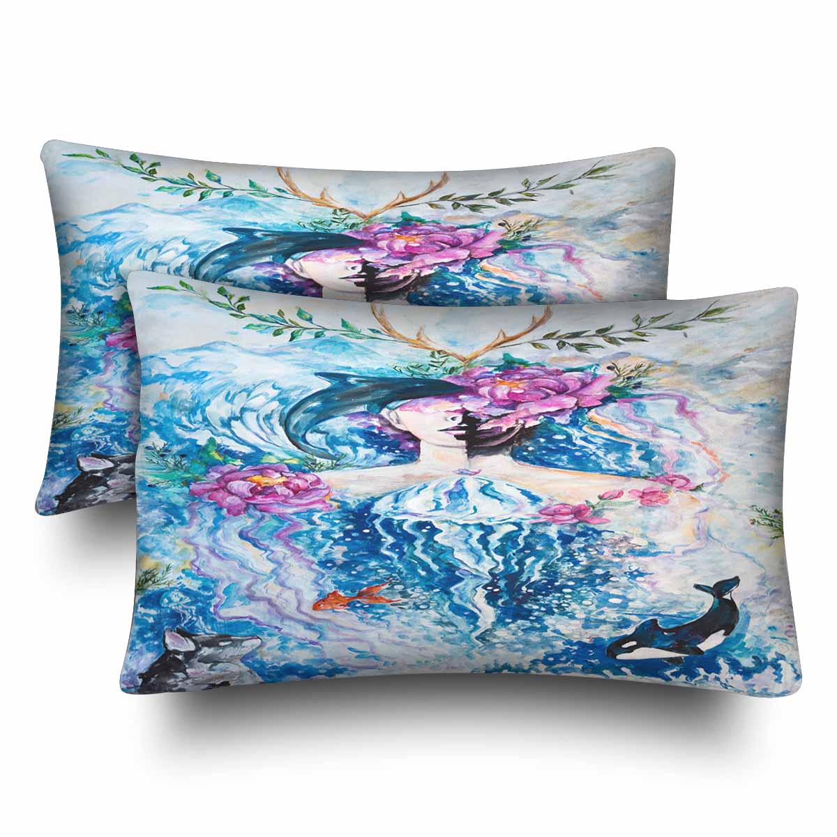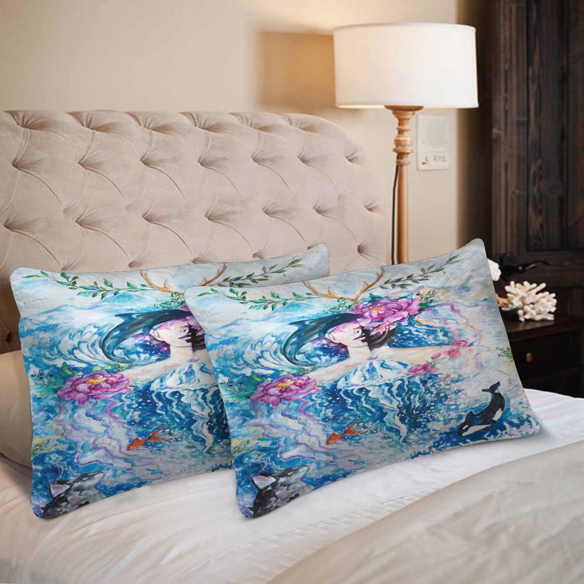 Rectangle Pillow Cases printed sea queen on a background of ocean waves and marine