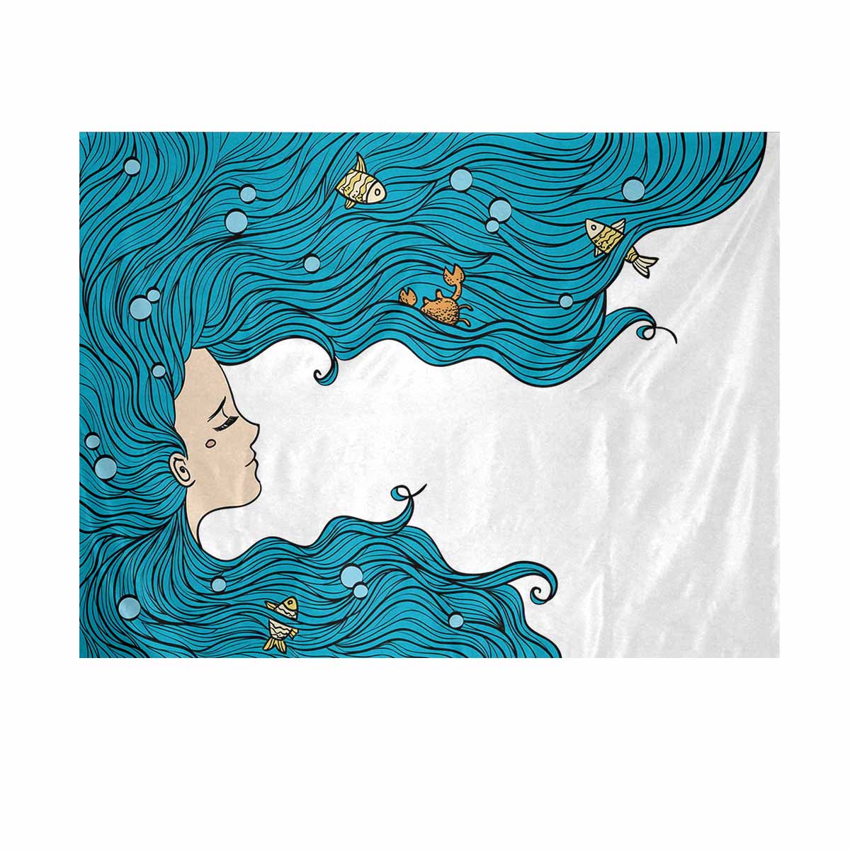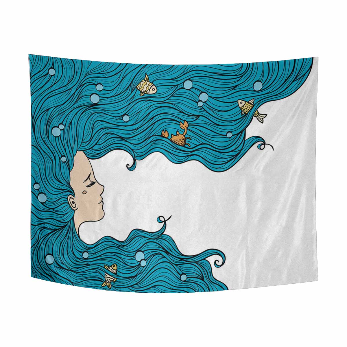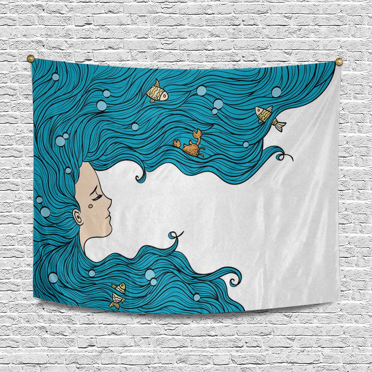 Nautical and Mermaid themed Wall Tapestries printed Sea Girl with blue hair