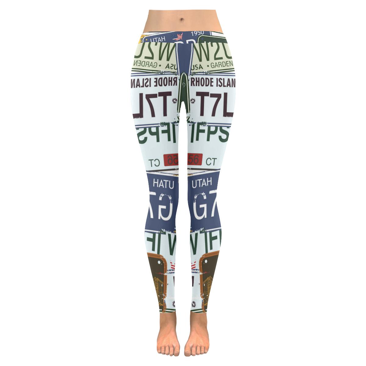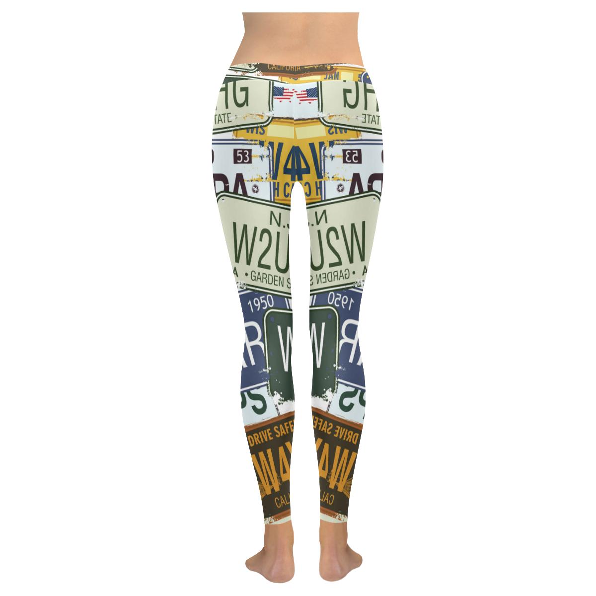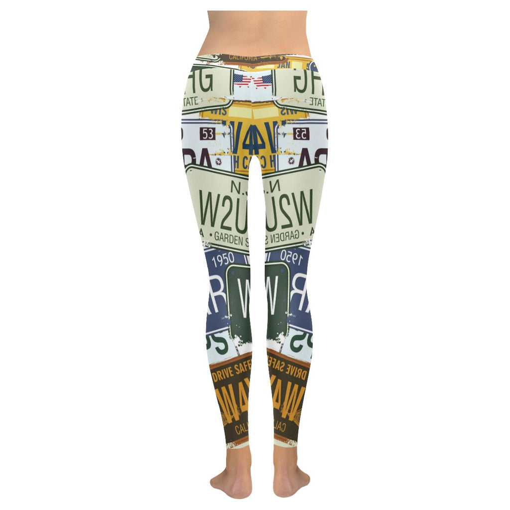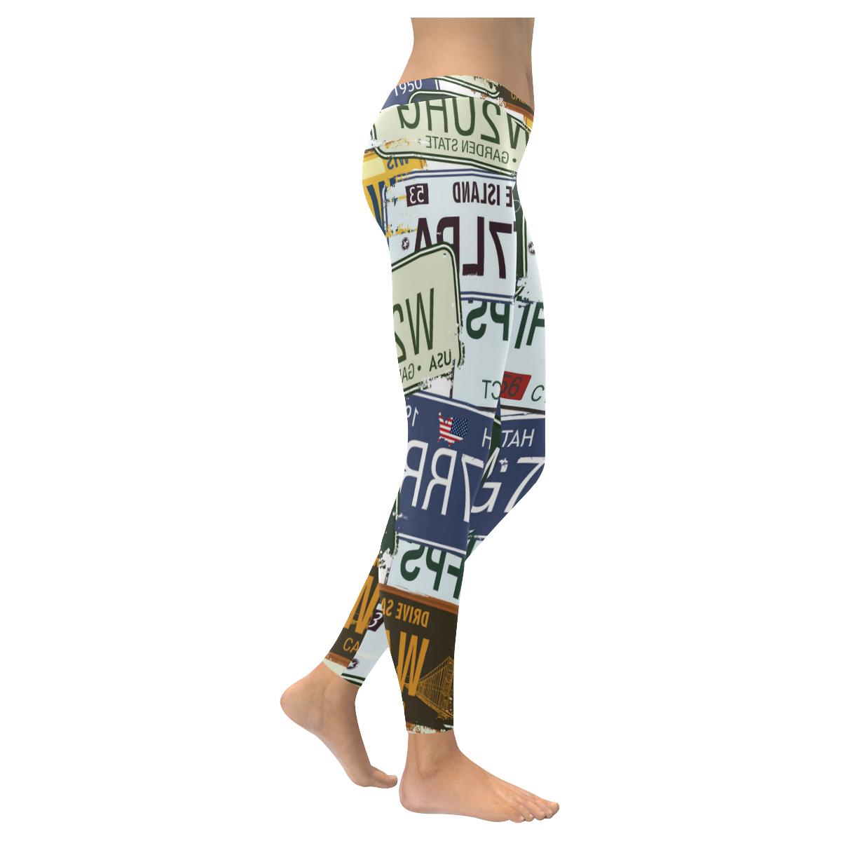 Zenzzle Retro Auto Licence Plates Graphic Low Rise yoga Leggings for women