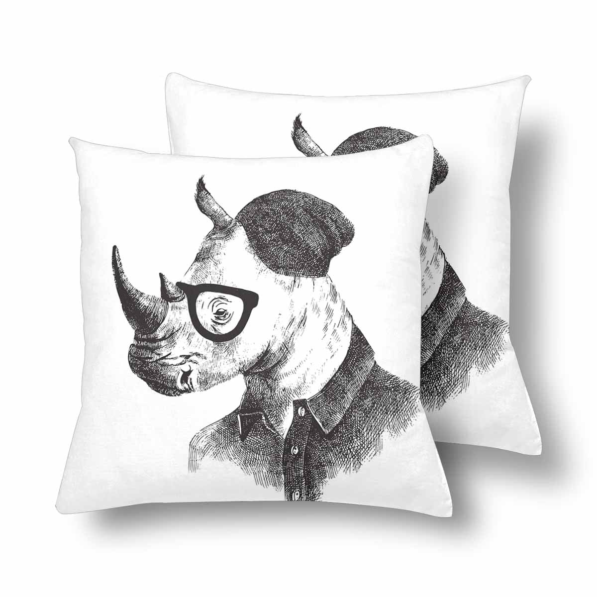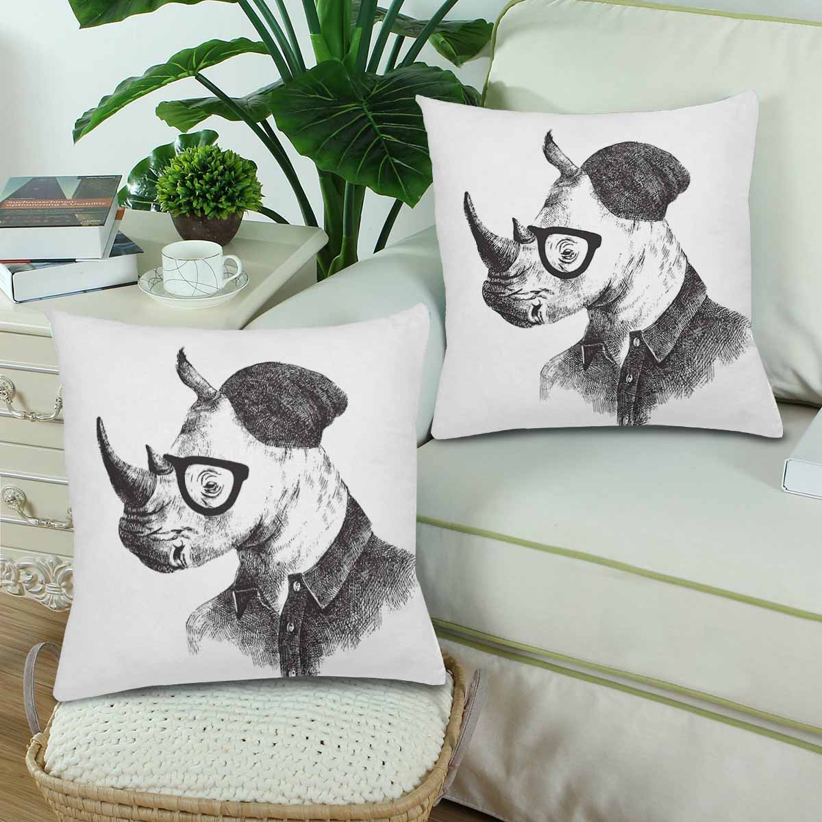 Animals themed Pillow Cases printed with dressed up rhino in hipster style