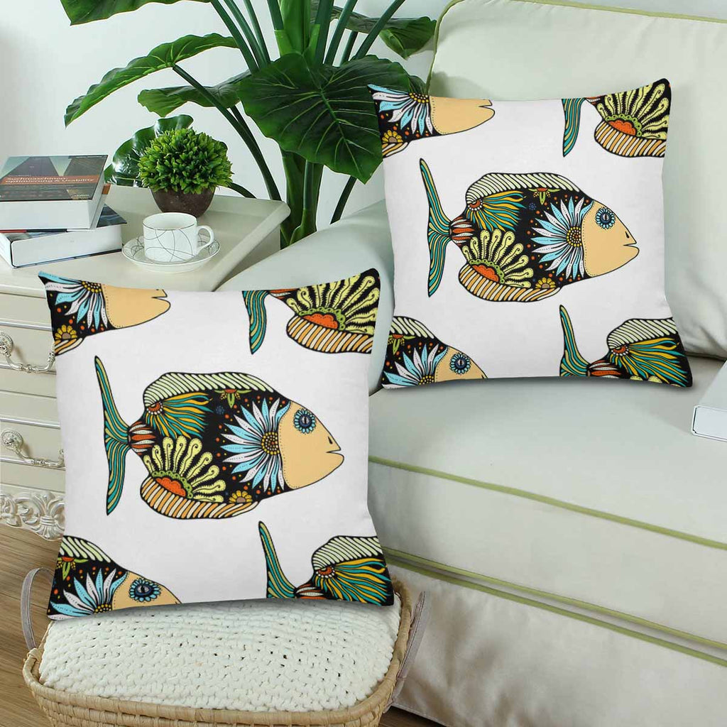 Animals themed Pillow Cases printed with fish with floral elements in doodle style