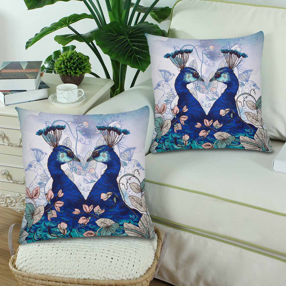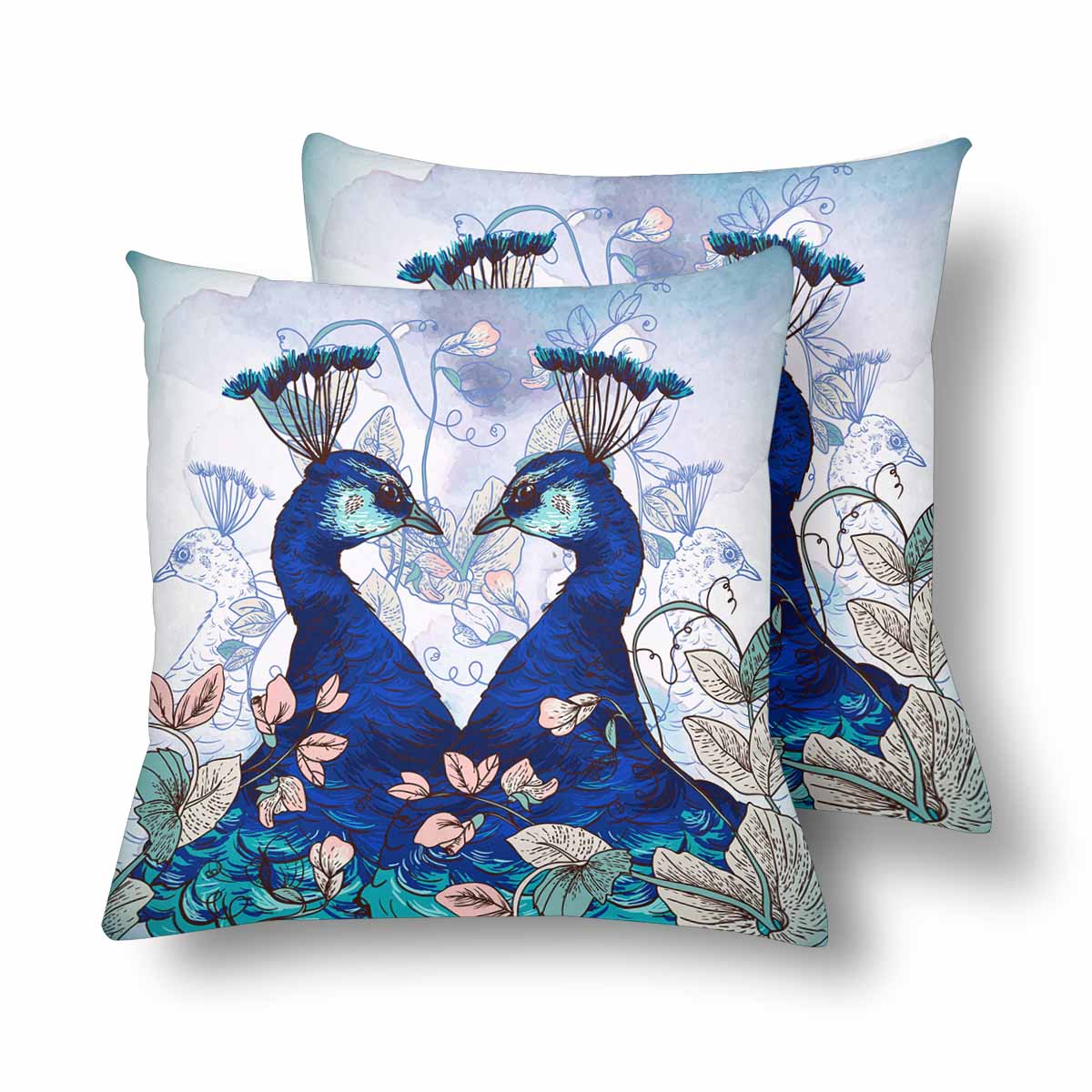 Animals themed Pillow Cases printed with Floral Background with Peacocks