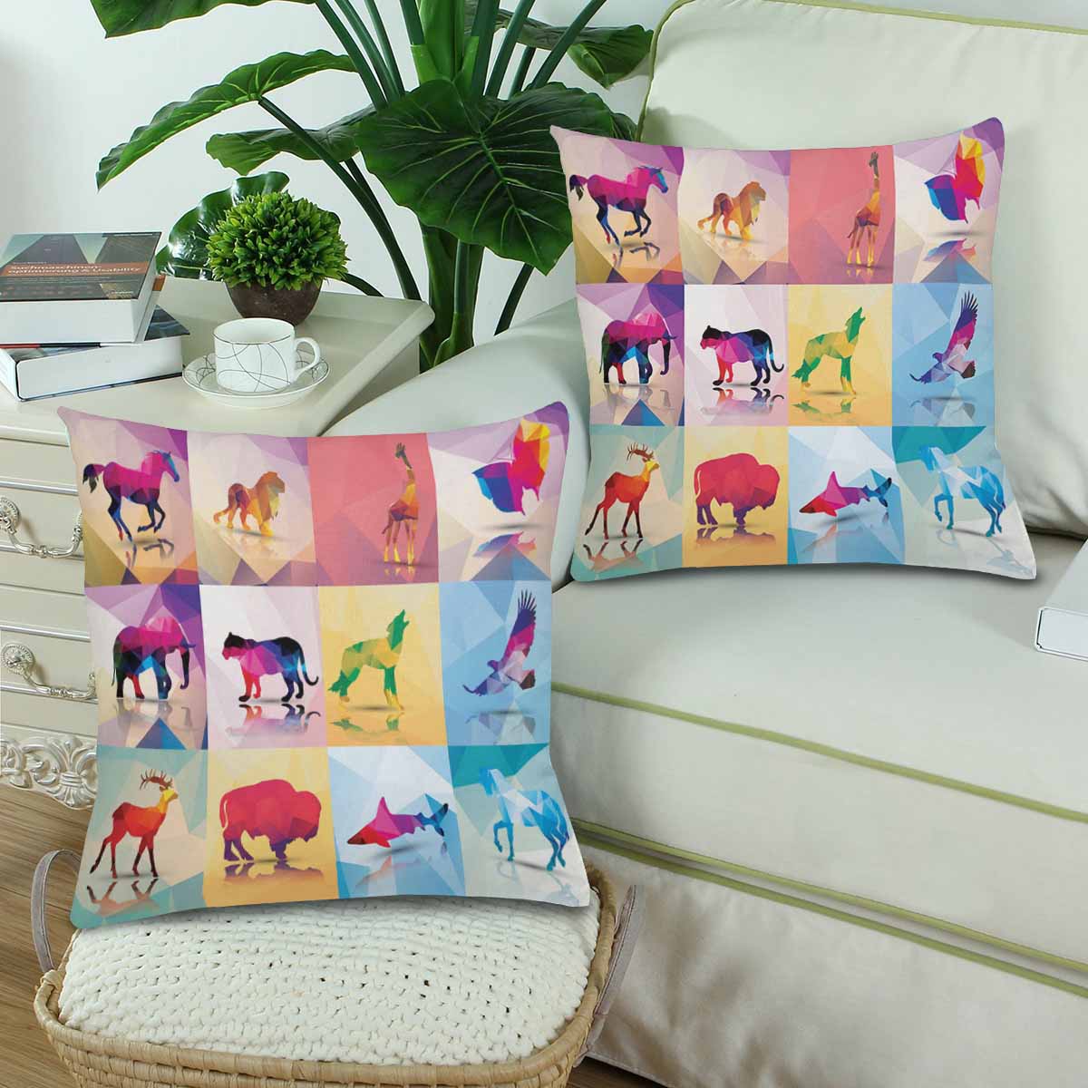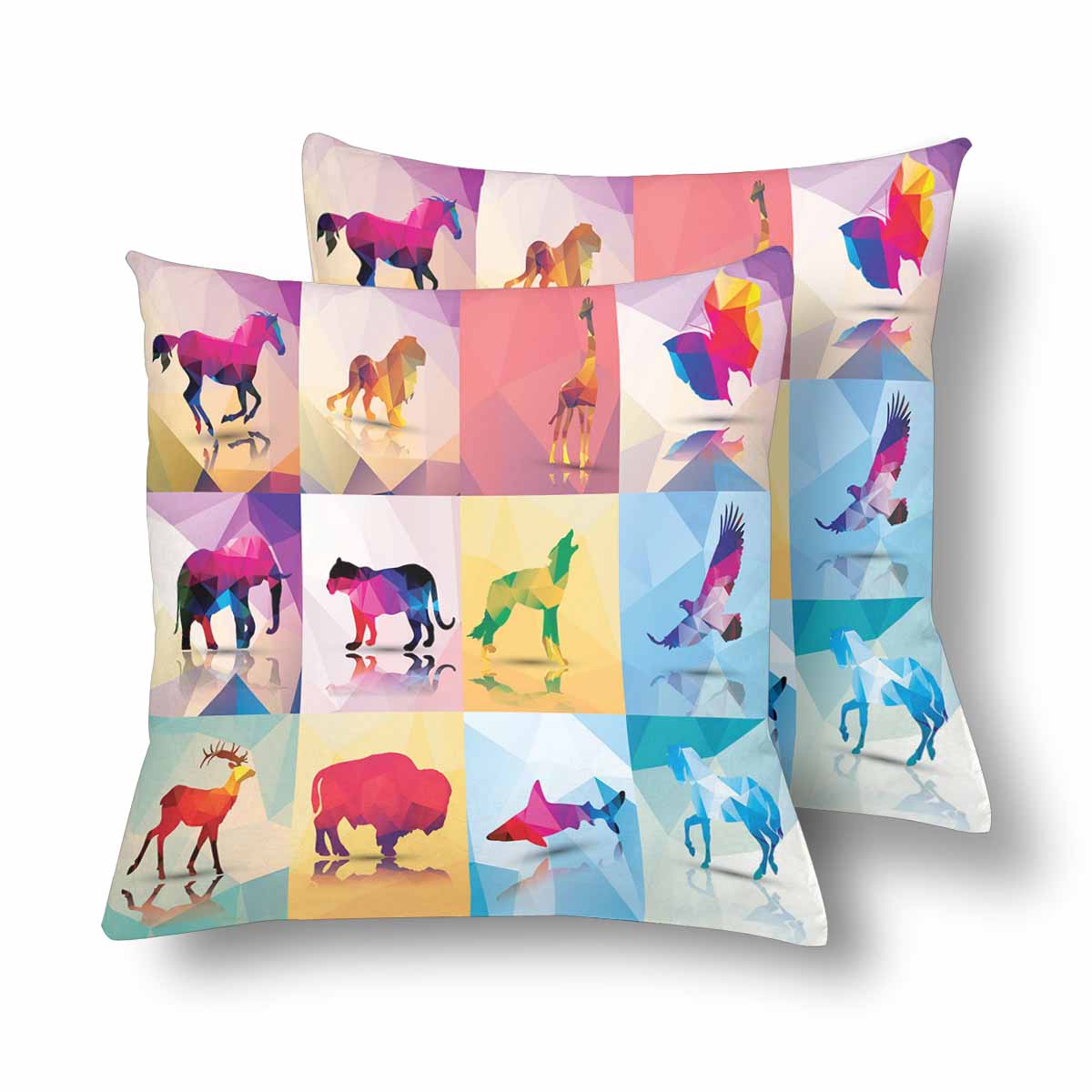 Animals themed Pillow Cases printed with geometric polygon animals, horse, lion