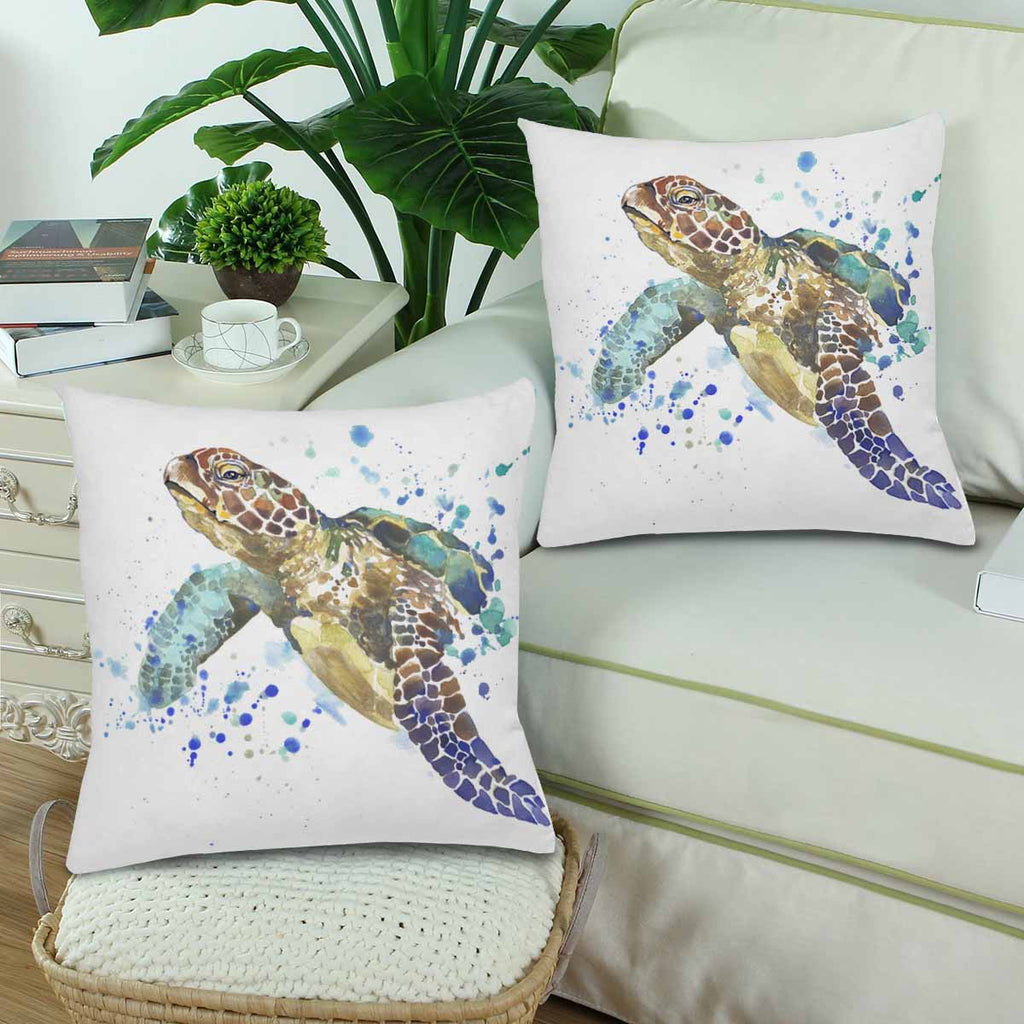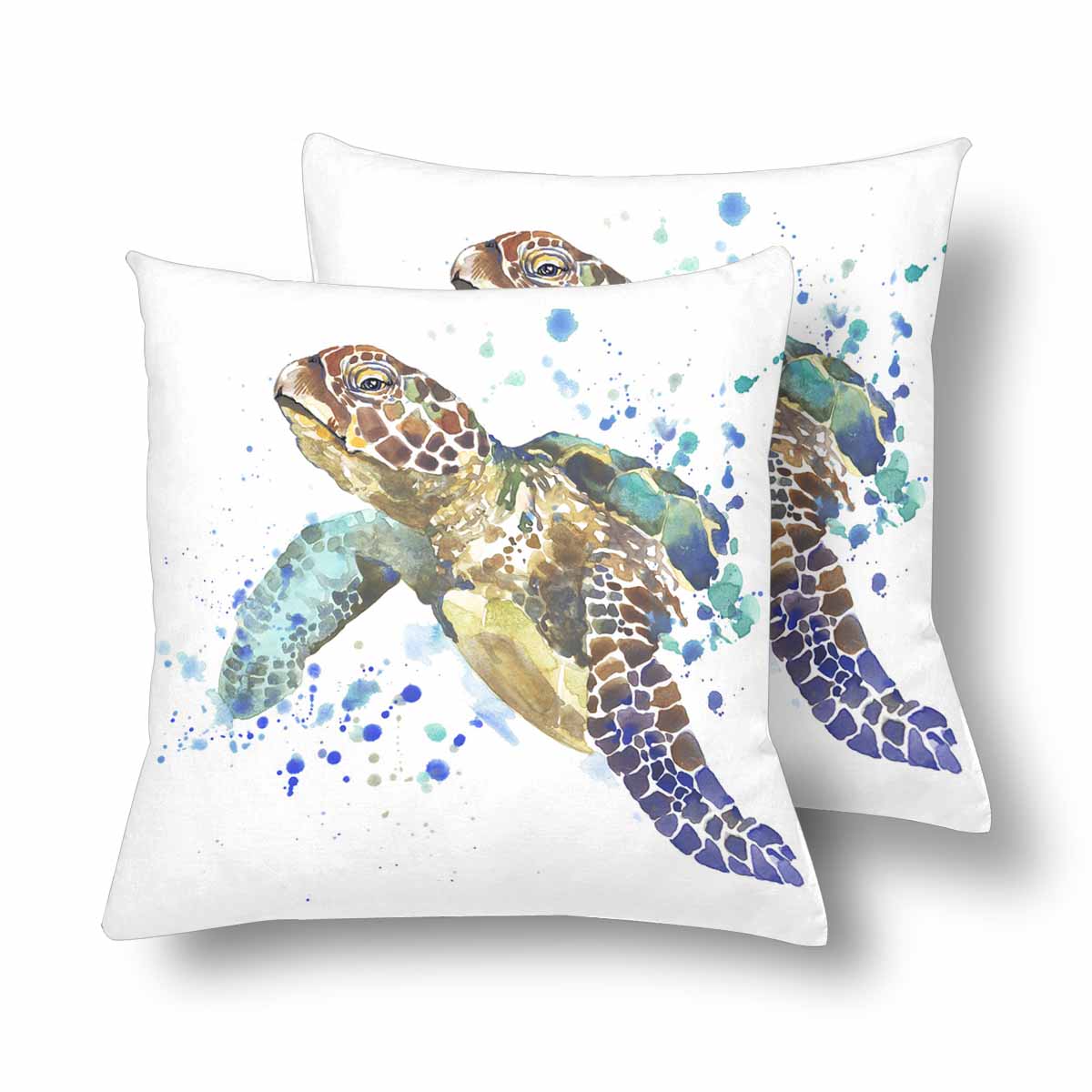 Animals themed Pillow Cases printed with graphic sea turtle illustration with splash watercolor textured background