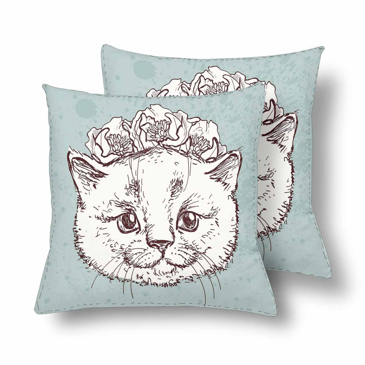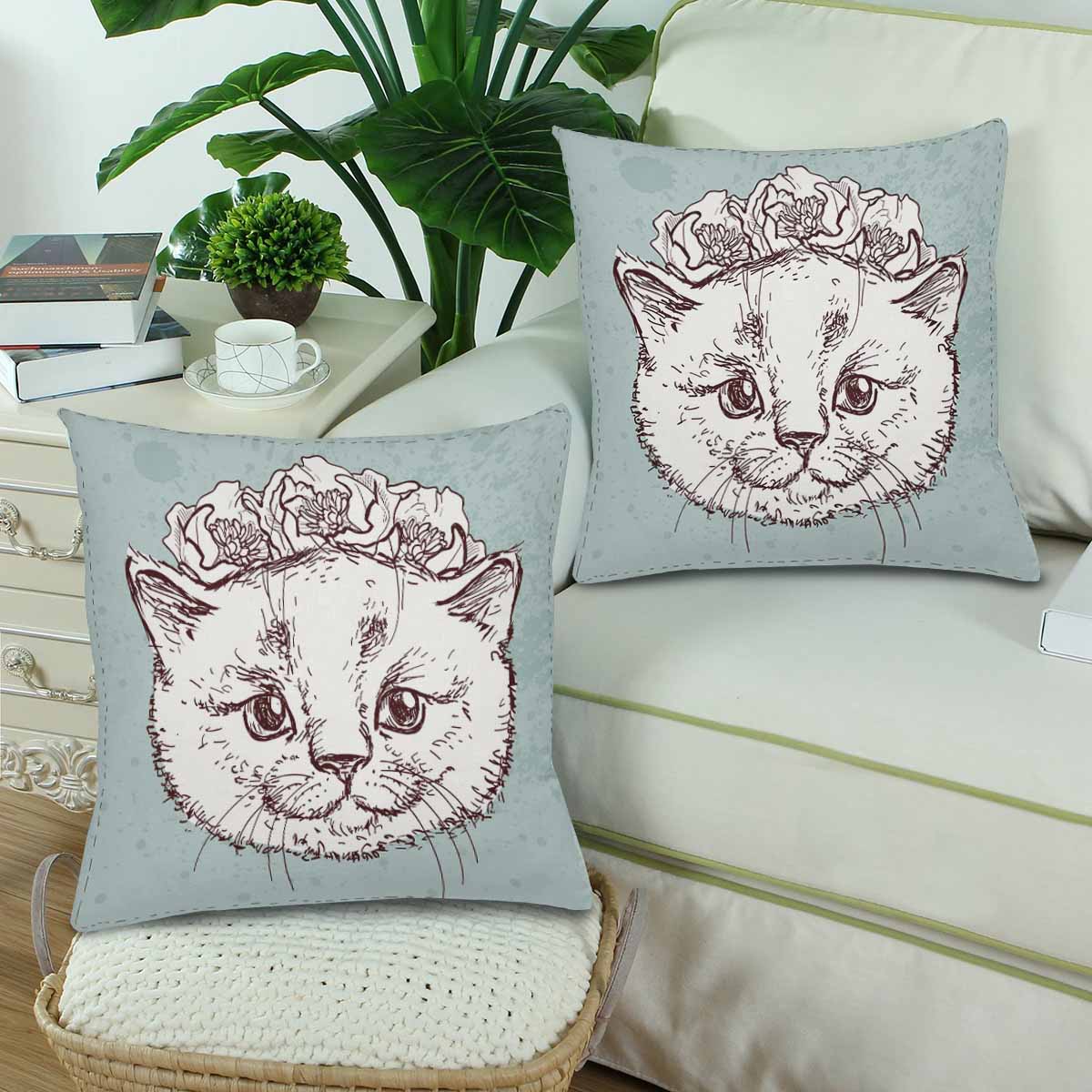 Animals themed Pillow Cases printed with Hipster kitty with flowers