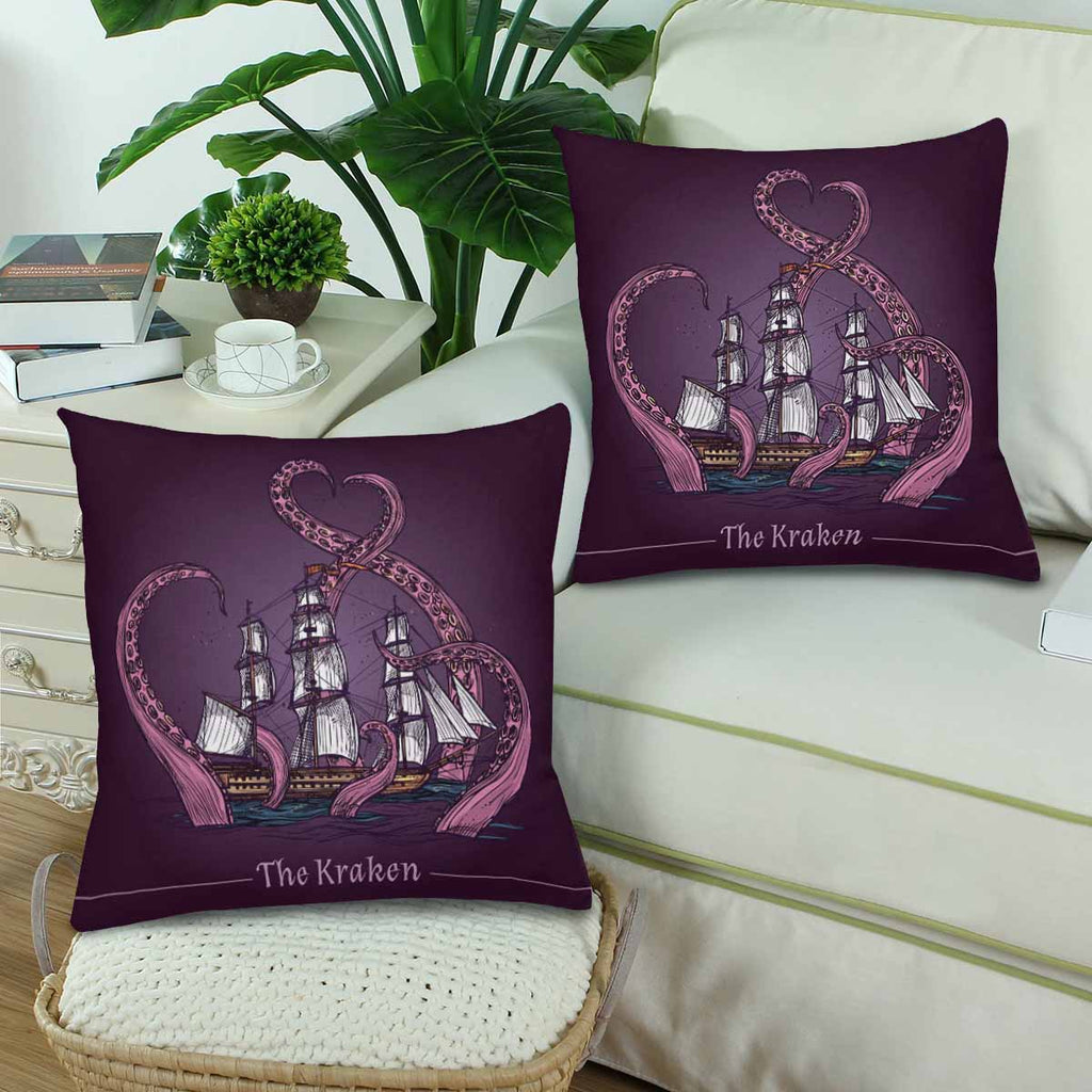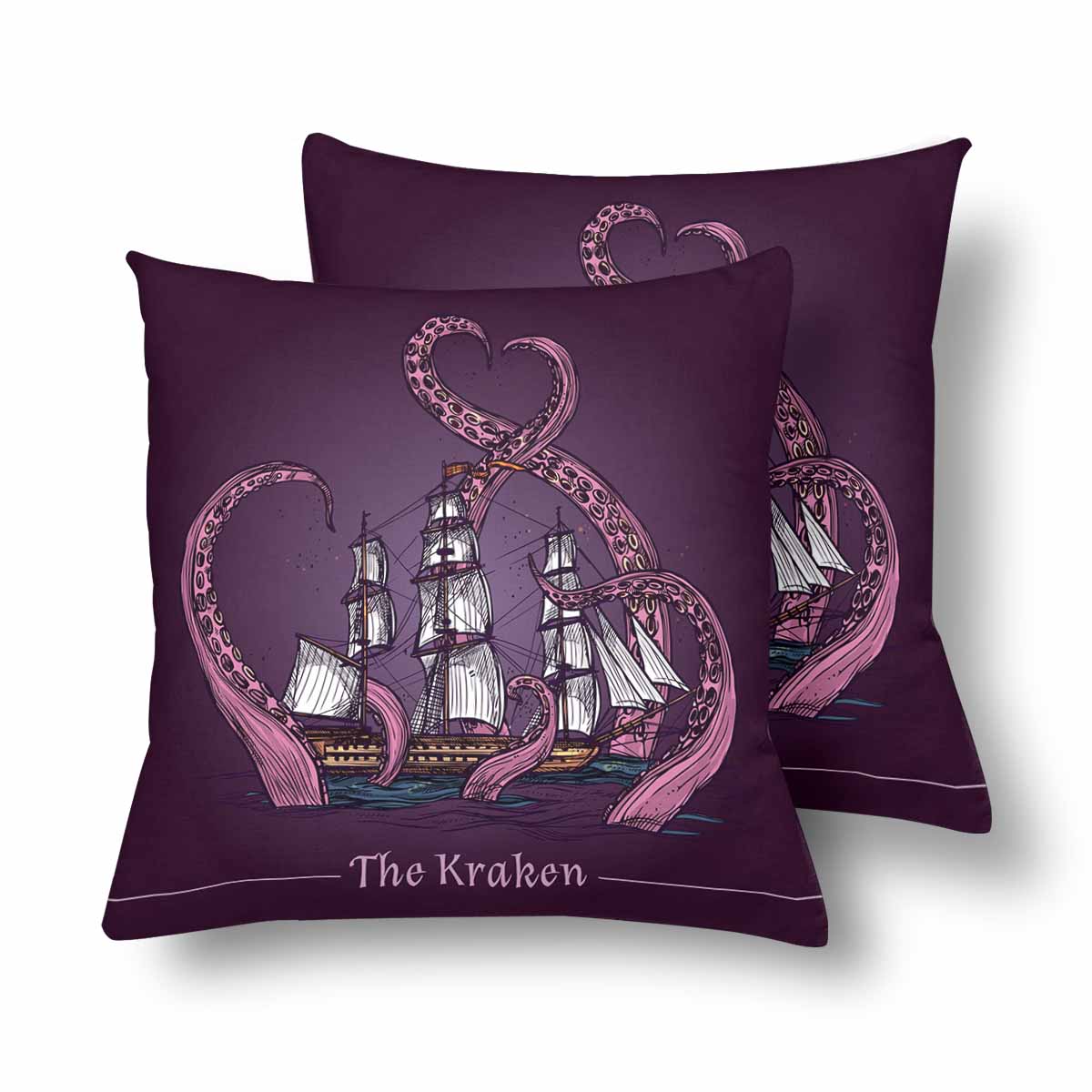 Animals themed Pillow Cases printed with Kraken decorative emblem with sail ship in giant monster tentacles
