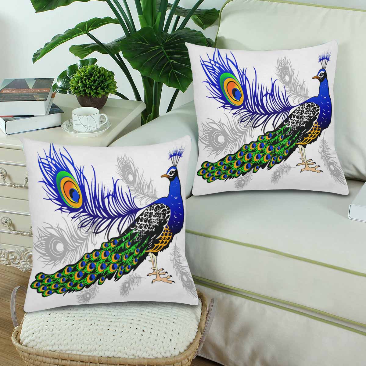Animals themed Pillow Cases printed with male peacock and feather