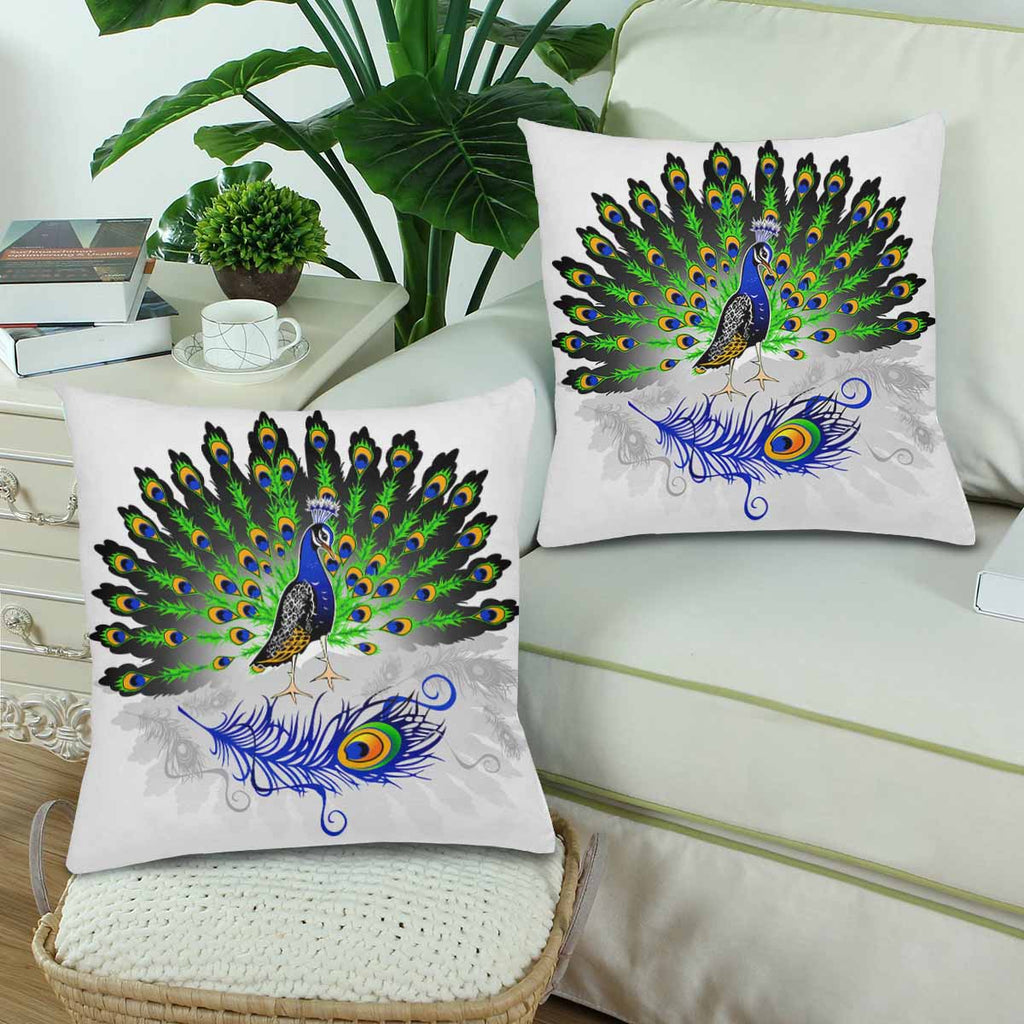 Animals themed Pillow Cases printed with Male peacock with open tail on isolated backgroud