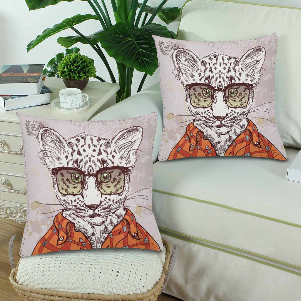 Animals themed Pillow Cases printed with Vector hipster leopard with glasses and suit