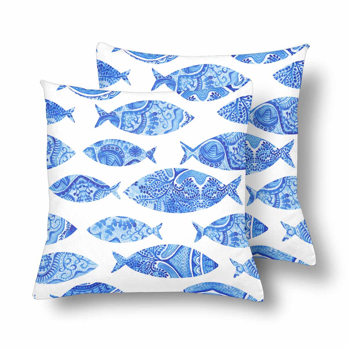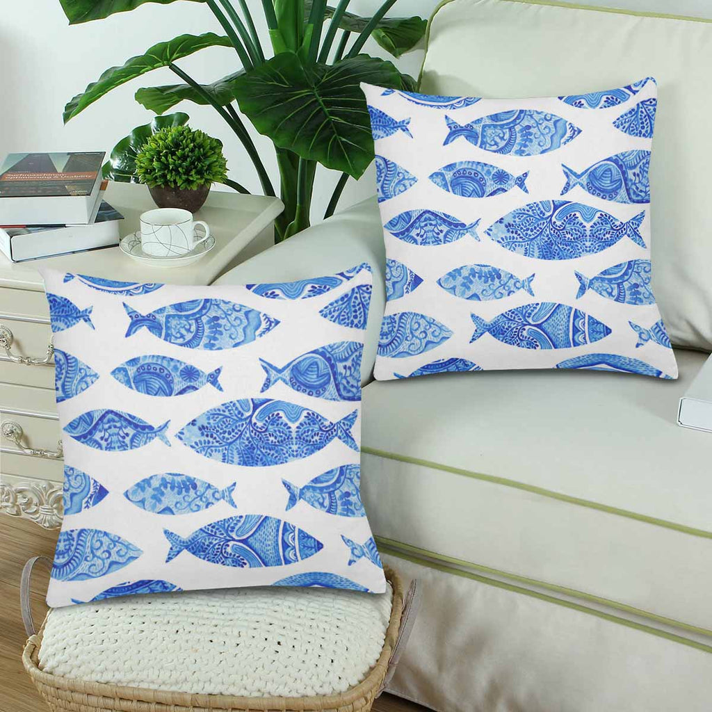 Animals themed Pillow Cases printed with watercolor stylized blue fish