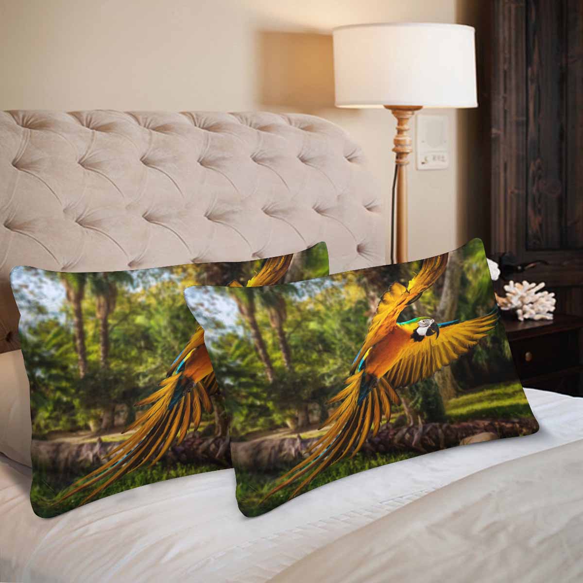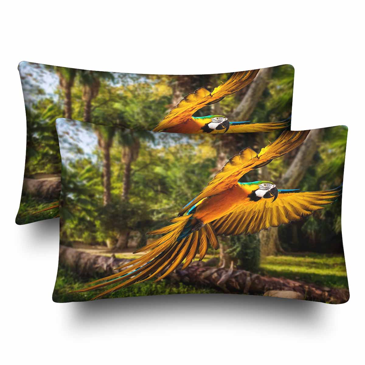 Animals themed Rectangle Pillow Cases printed Colourful flying parrot in tropical landscape