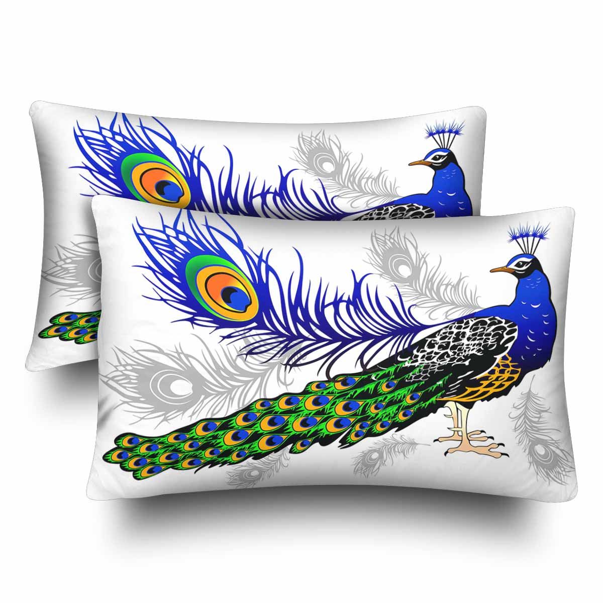 Animals themed Rectangle Pillow Cases printed male peacock and feather