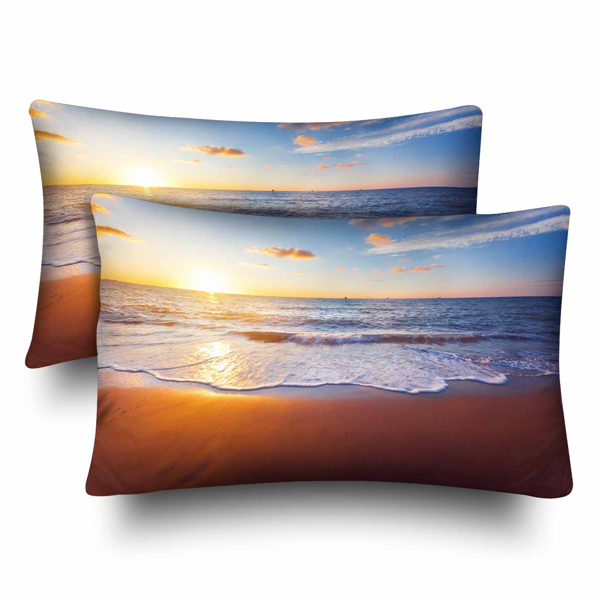 Tropical themed Rectangle Pillow Cases printed Sunset and sea