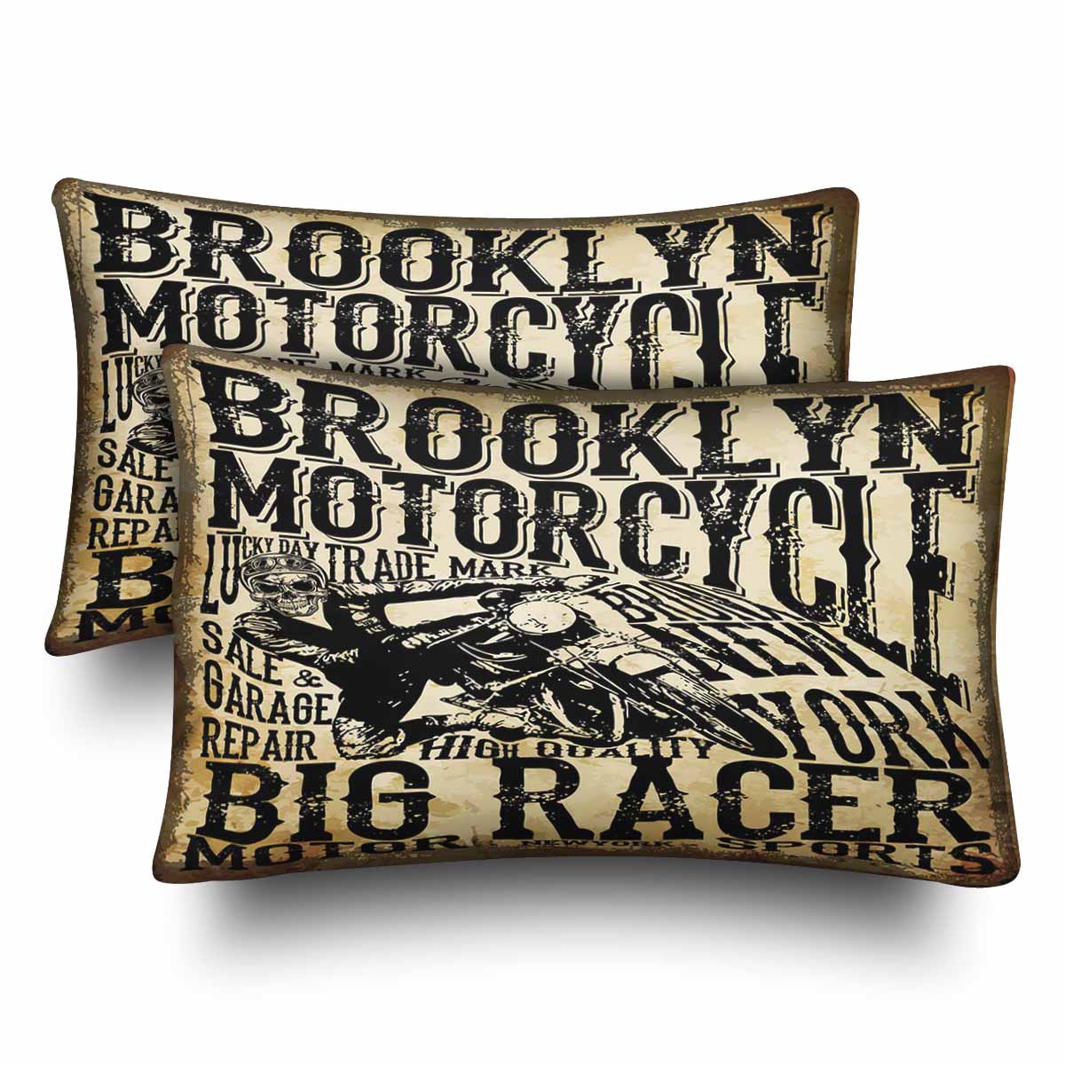 Retro themed Rectangle Pillow Cases printed Motorcycle Racing