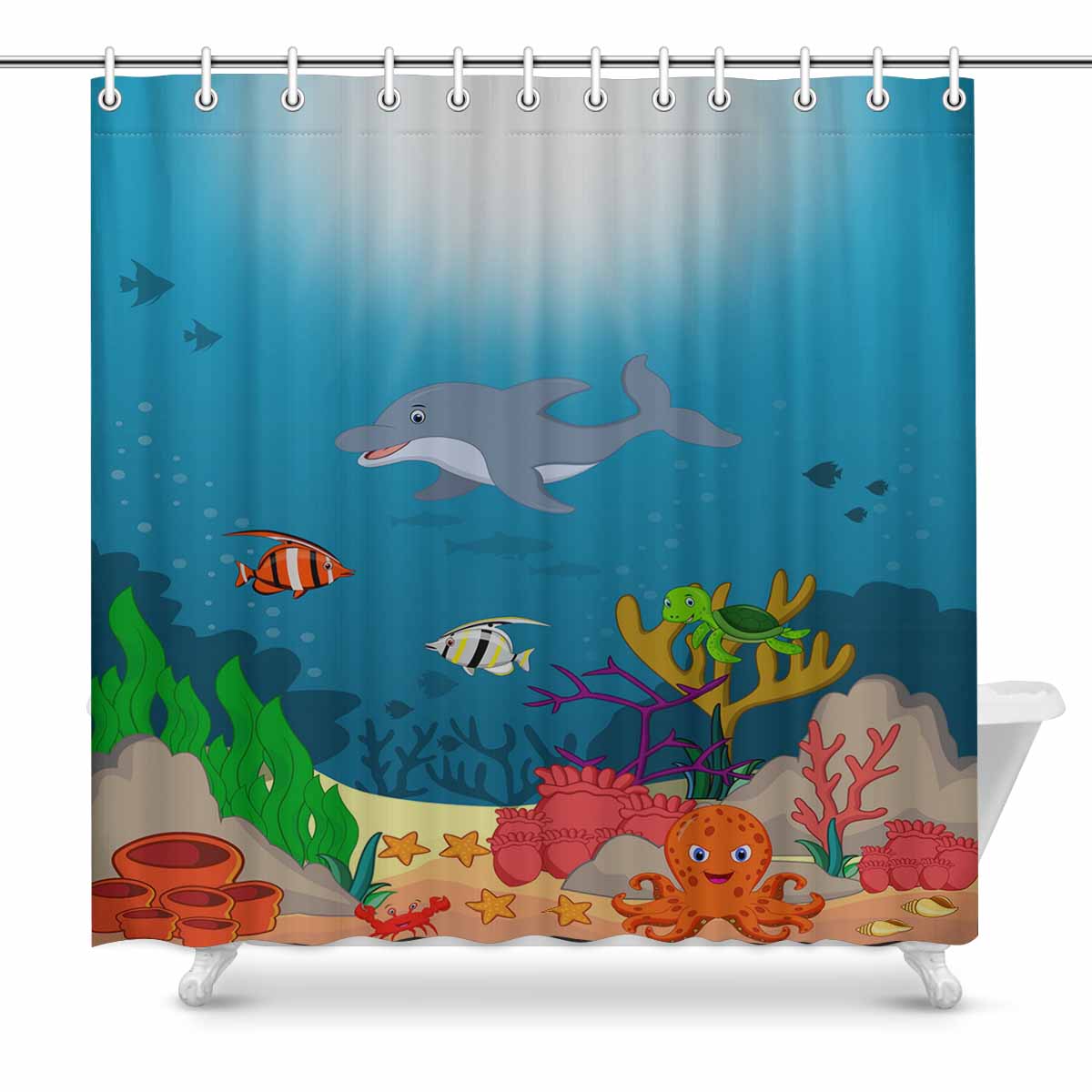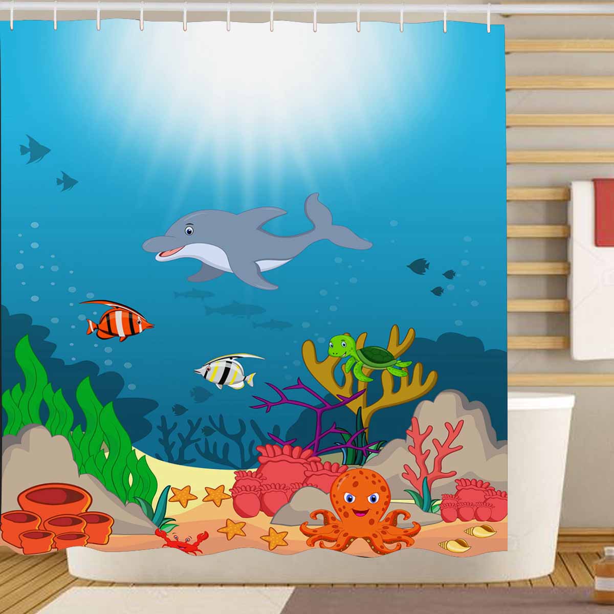 Seaworld themed print on shower curtains for bathroom, create a brilliant atmosphere in your bathroom, include a selection of different stylish and custom-made designs for your bath decoration.