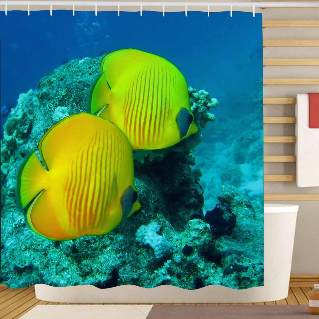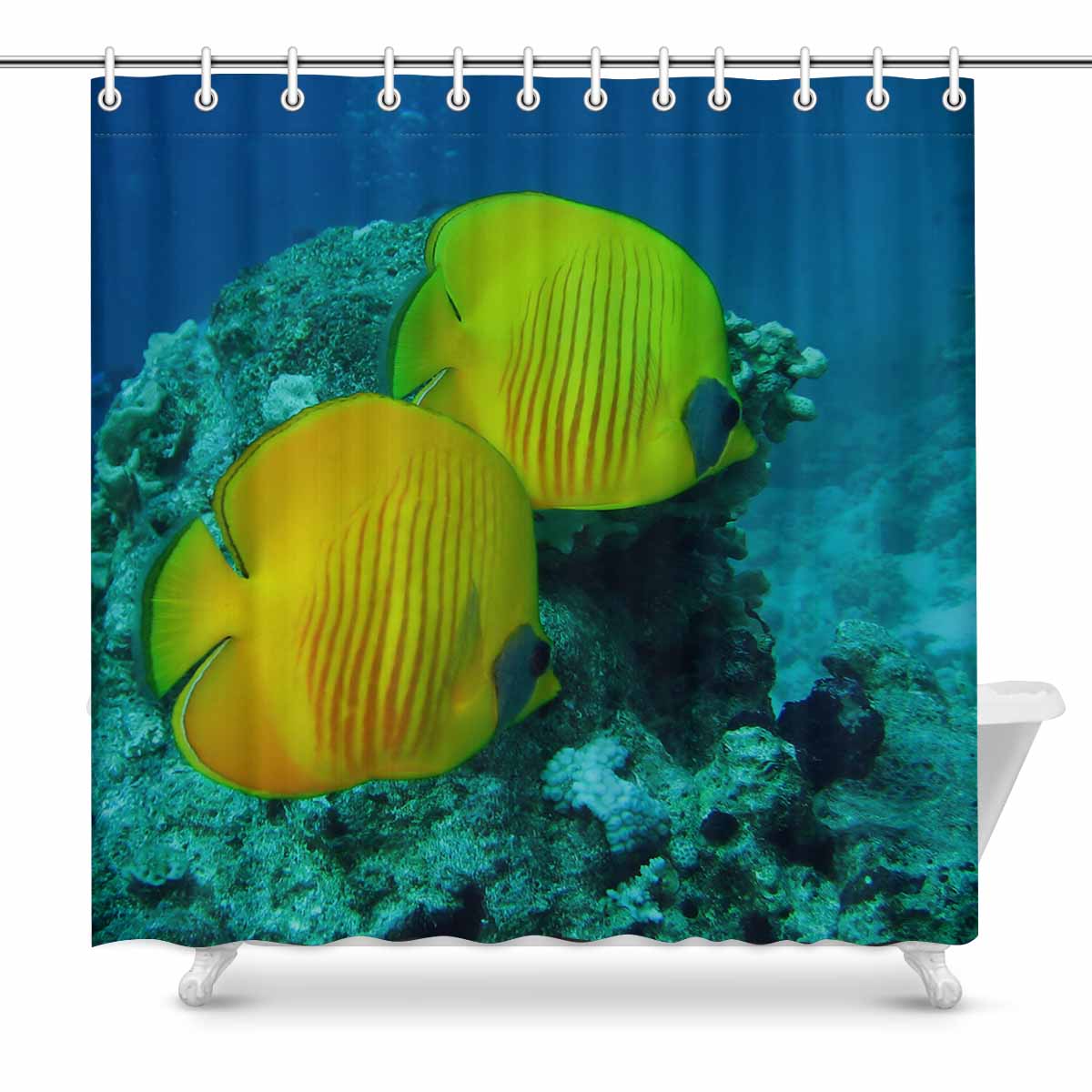 Seaworld Shower Curtains print with beautiful masked butterfly fish