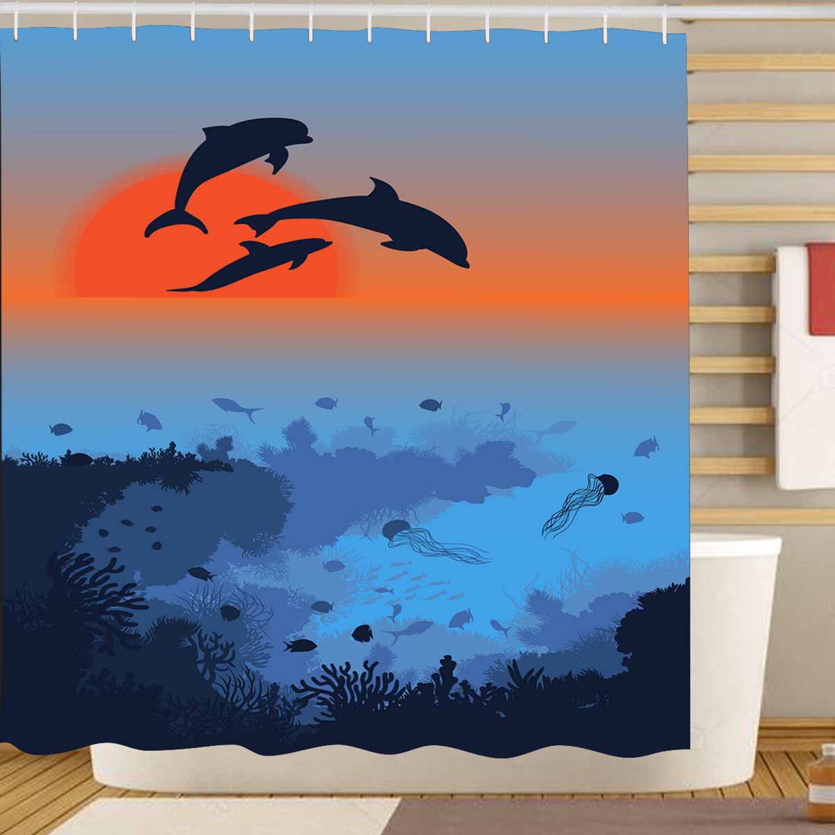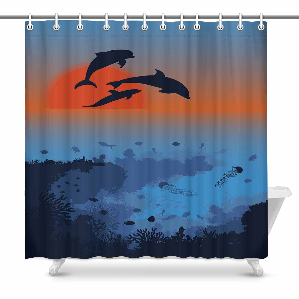 Seaworld themed print on shower curtains for bathroom, create a brilliant atmosphere in your bathroom, include a selection of different stylish and custom-made designs for your bath decoration.