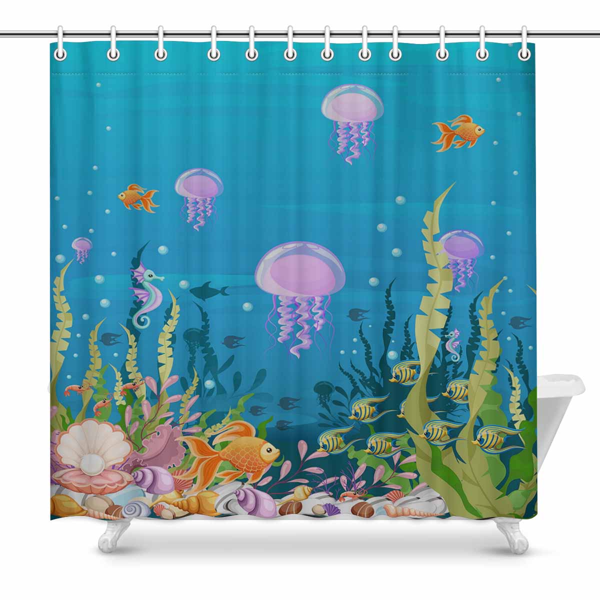 Seaworld Shower Curtains print with Undersea with Jellyfish fish Marine Life