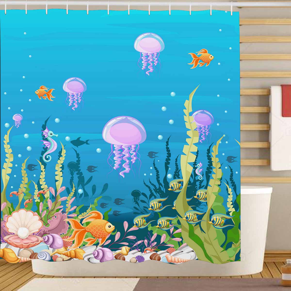 Seaworld themed print on shower curtains for bathroom, create a brilliant atmosphere in your bathroom, include a selection of different stylish and custom-made designs for your bath decoration.