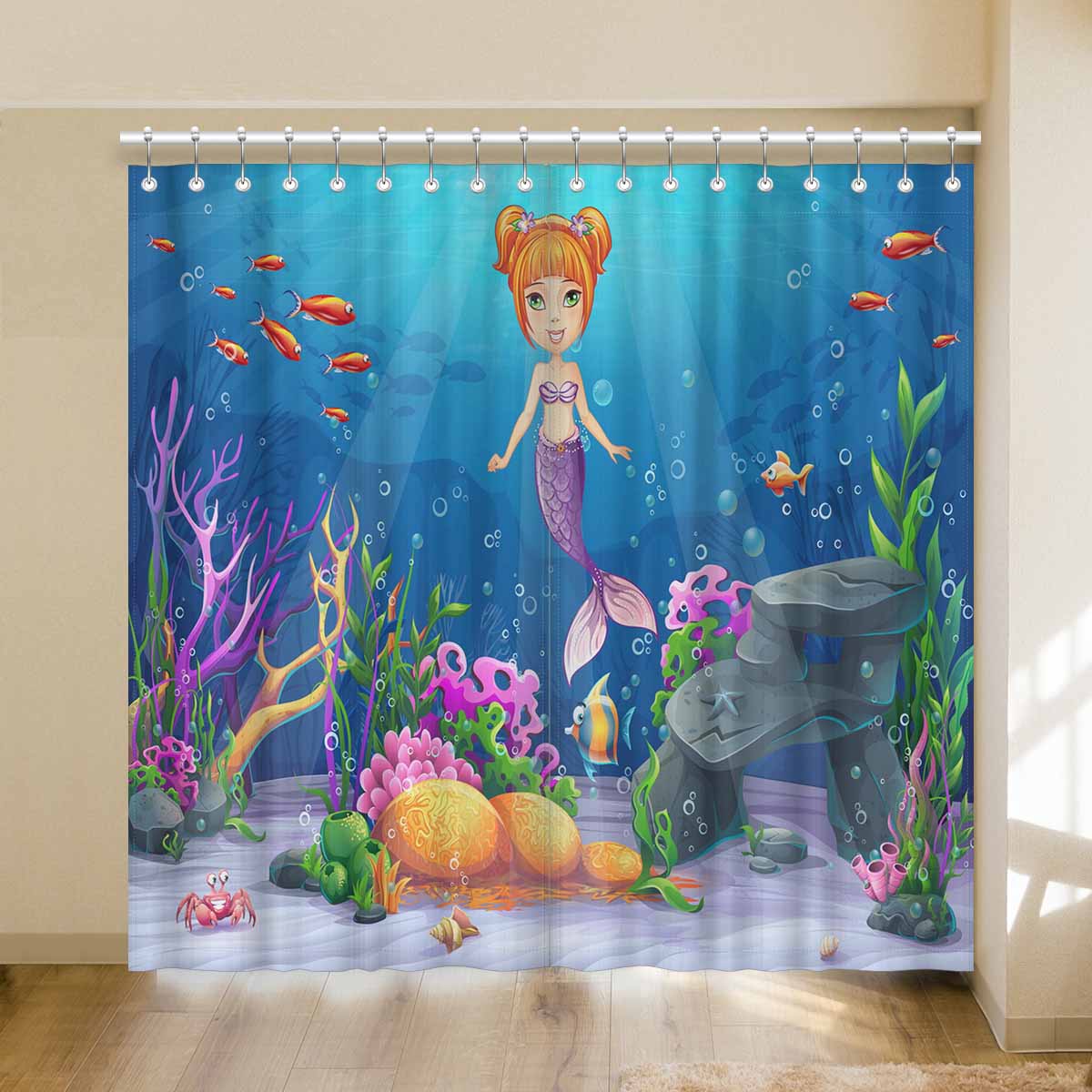 Seaworld Window Curtains print cartoon Mermaid pattern