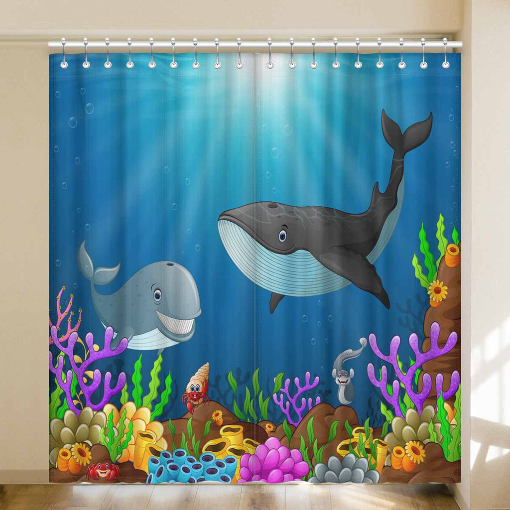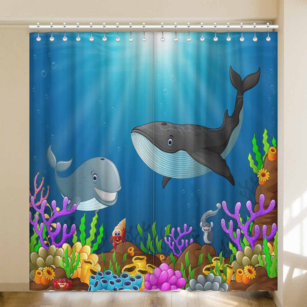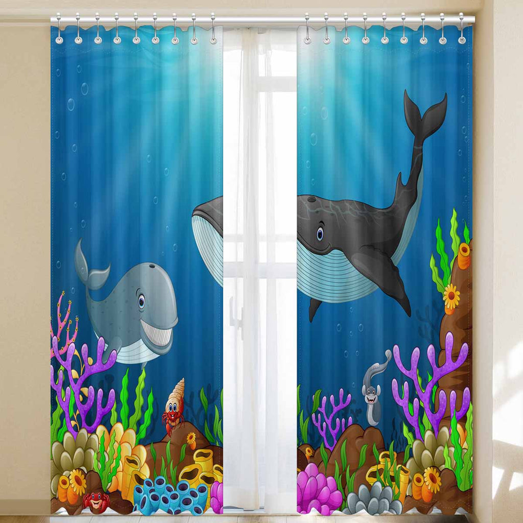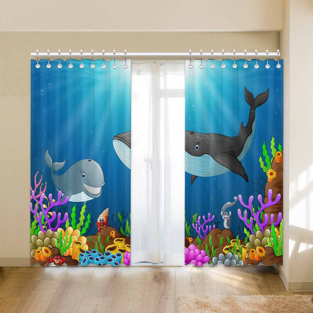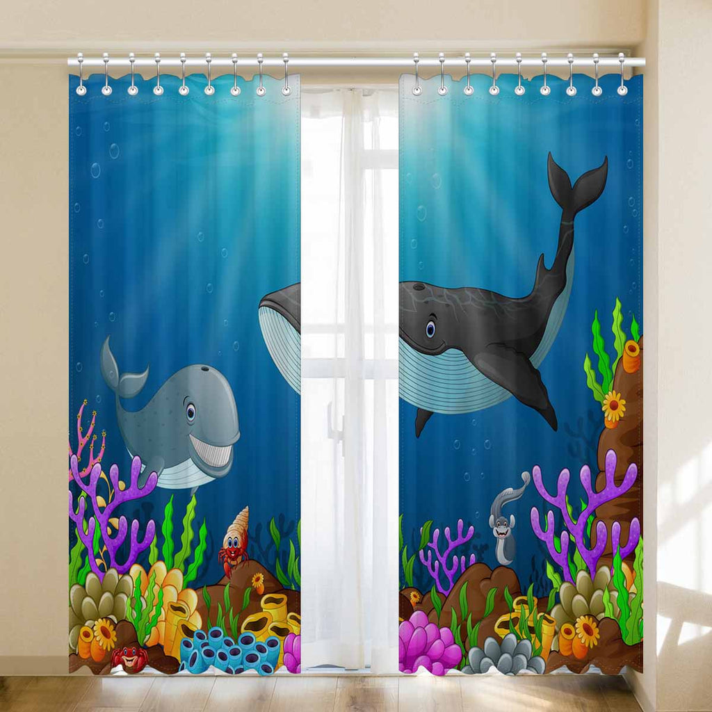 Seaworld Window Curtains print Cartoon shark and whale under the sea