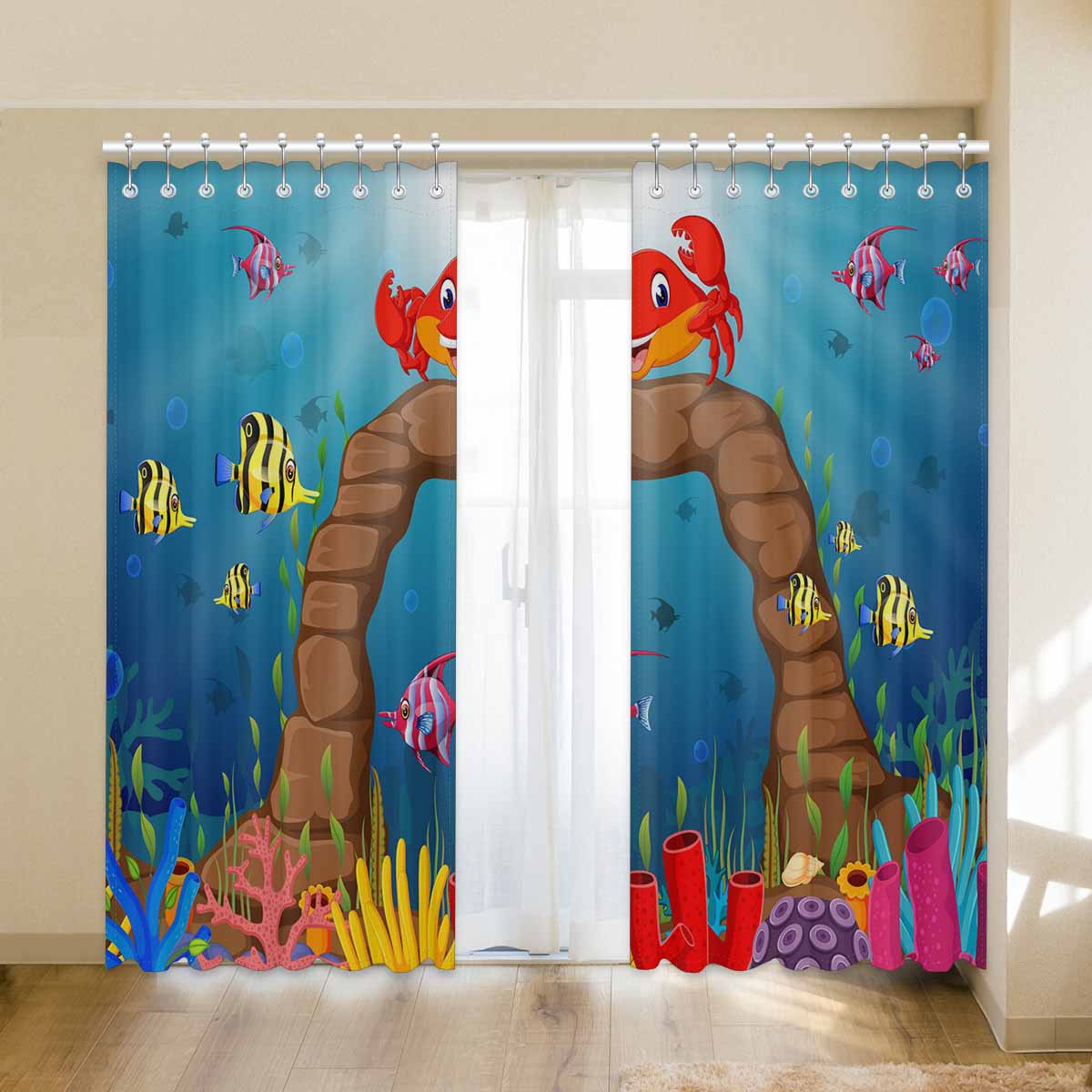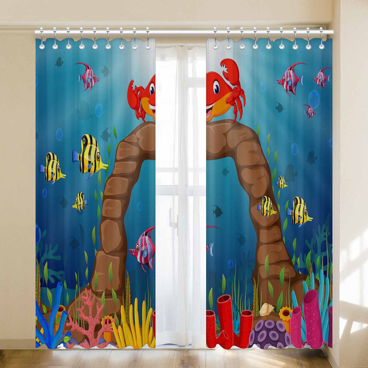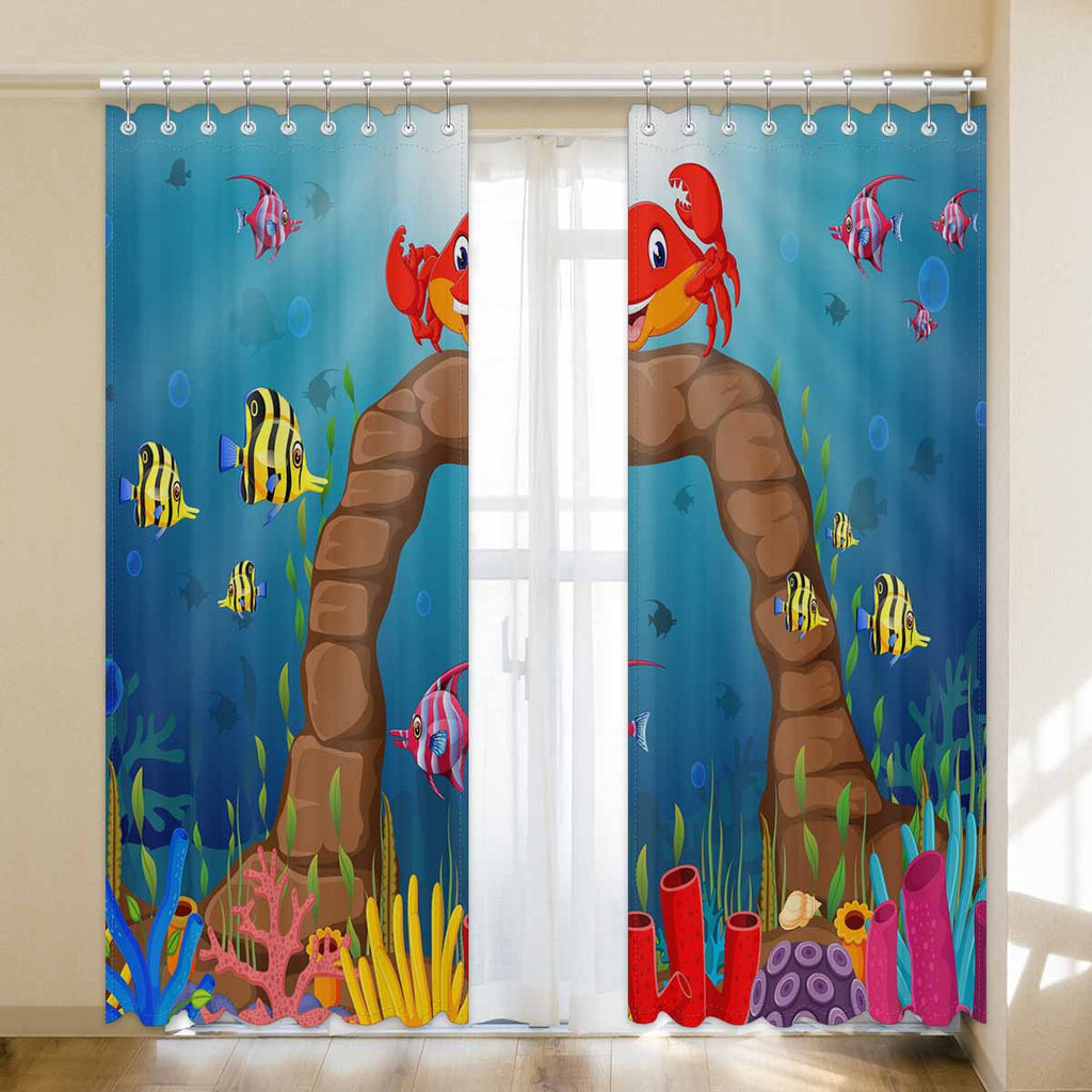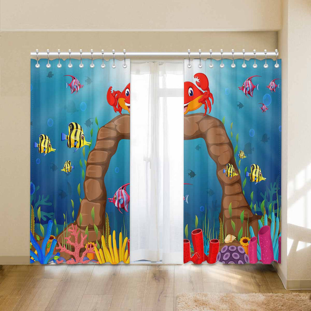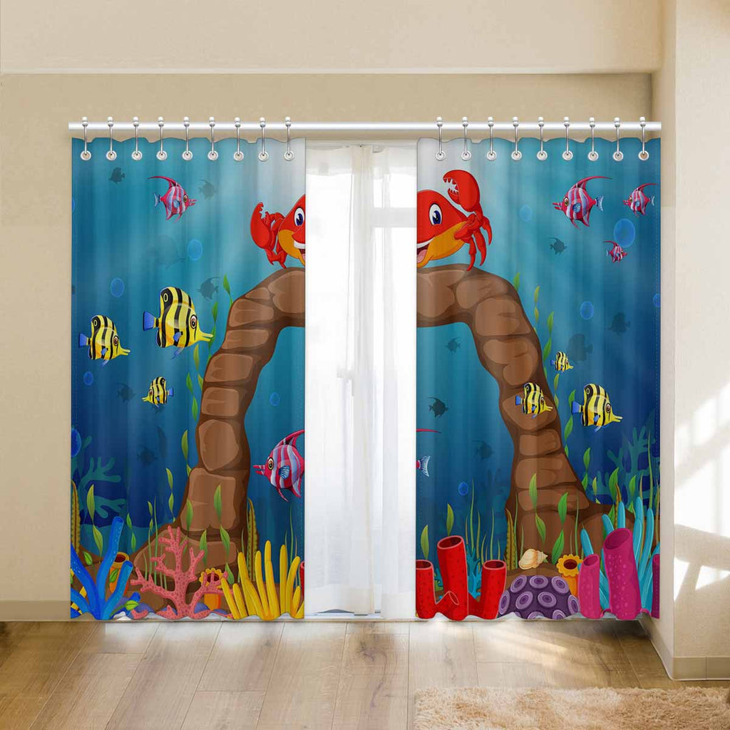 Seaworld Window Curtains print Cartoon tropical crab