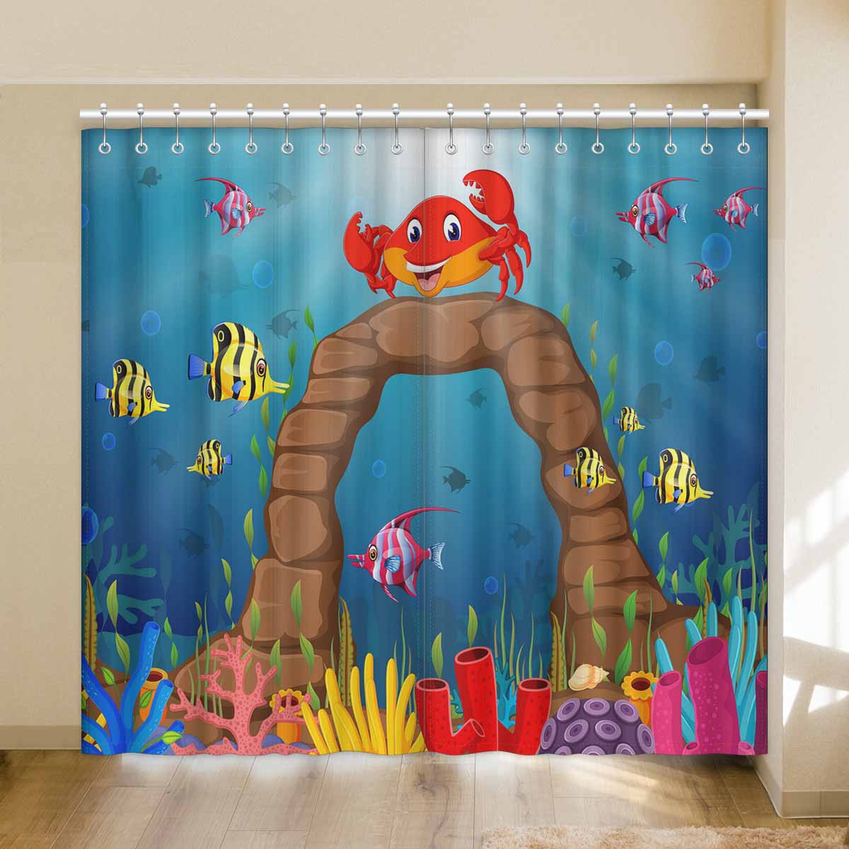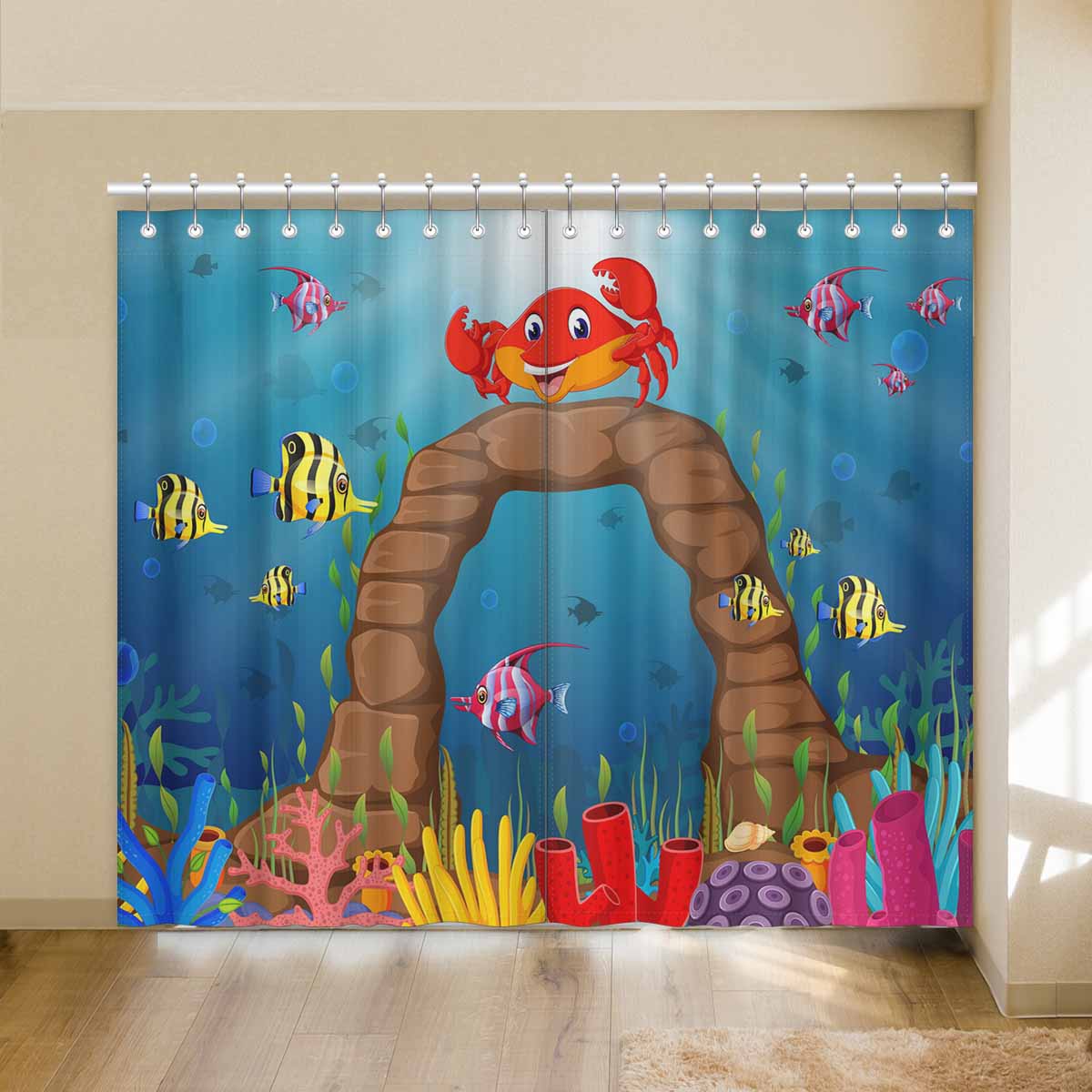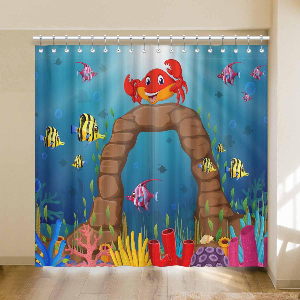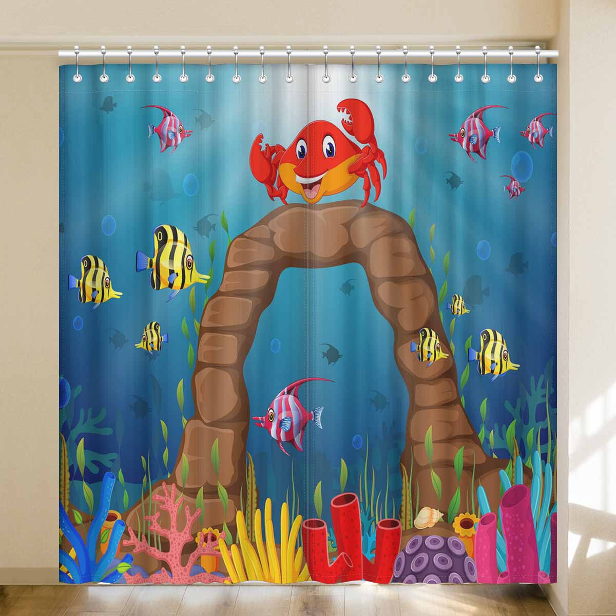 Seaworld Window Curtains print Cartoon tropical crab