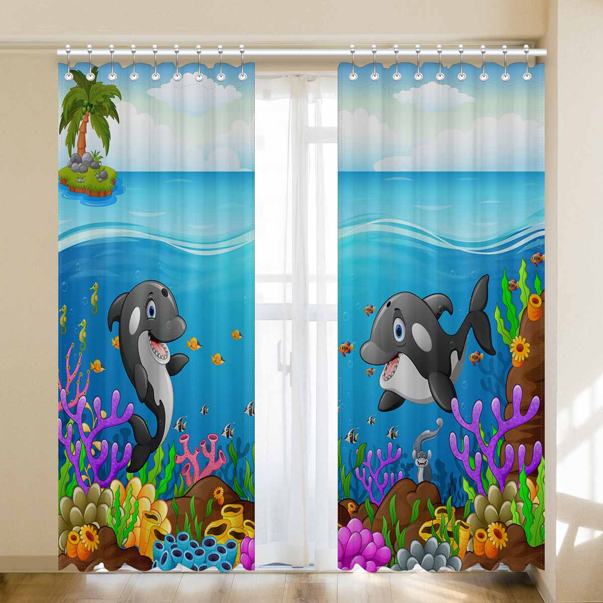 Seaworld Window Curtains print Cartoon whale under the sea pattern