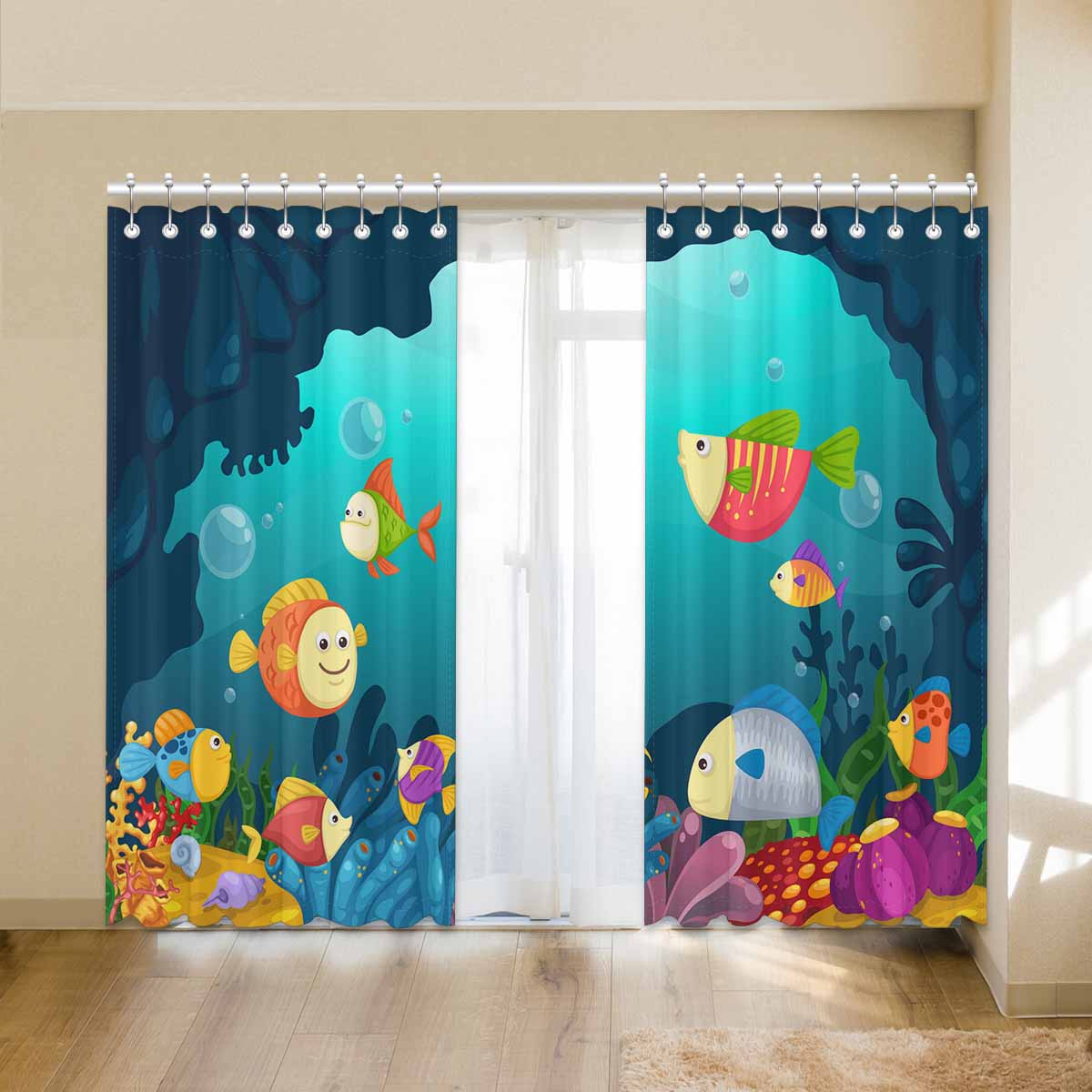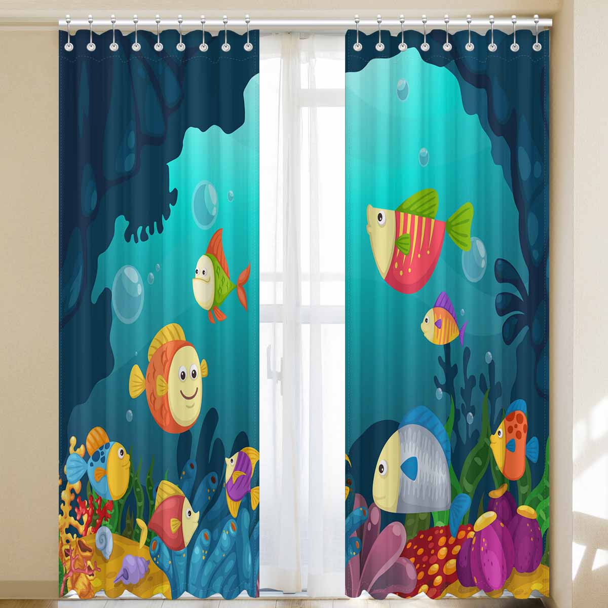 Seaworld Window Curtains print funny undersea fish
